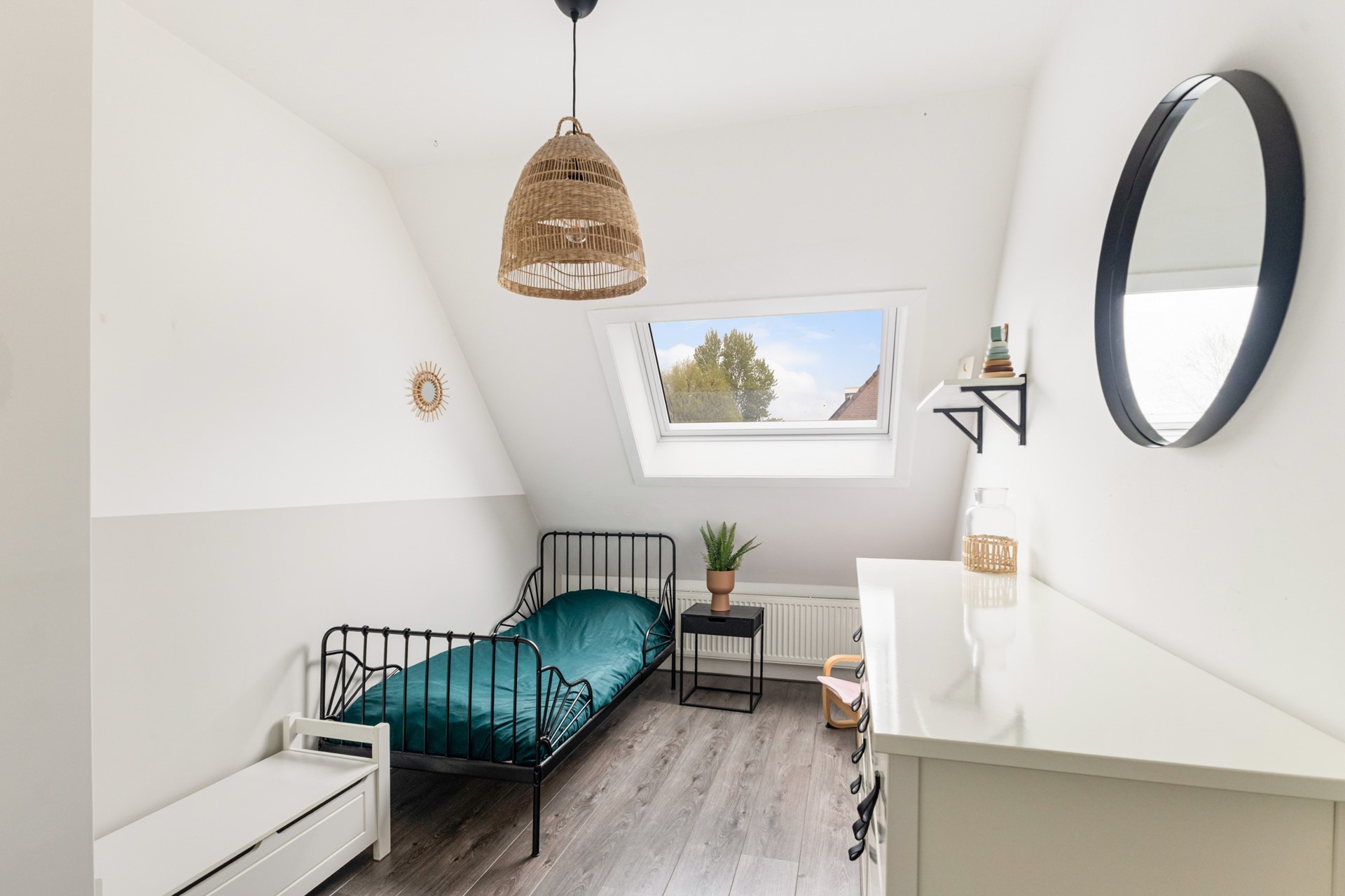 Deze ruime slaapkamer ligt aan de achterzijde van de woning, op het noordwesten, en beschikt over een kunststof Velux dakraam.