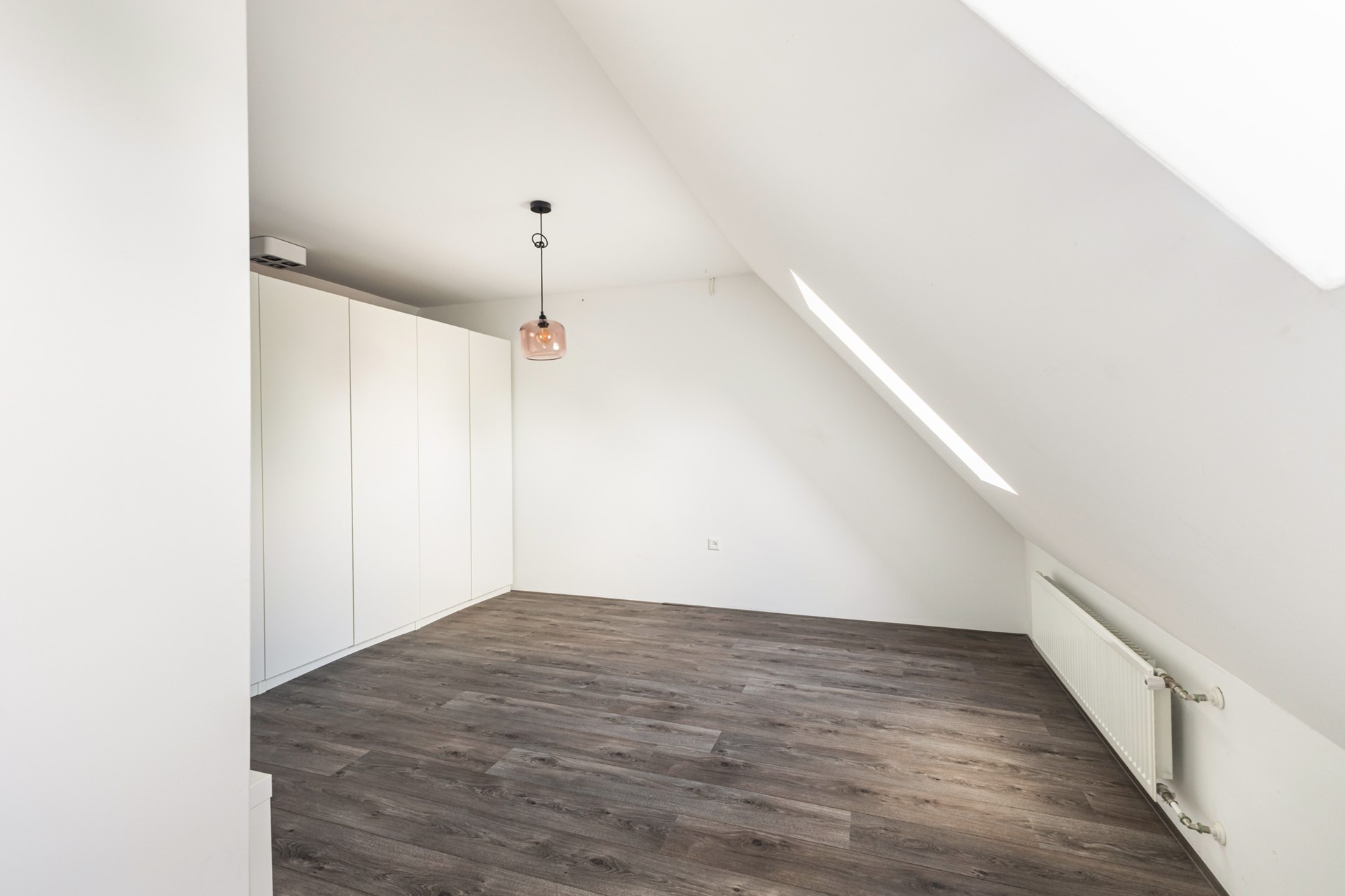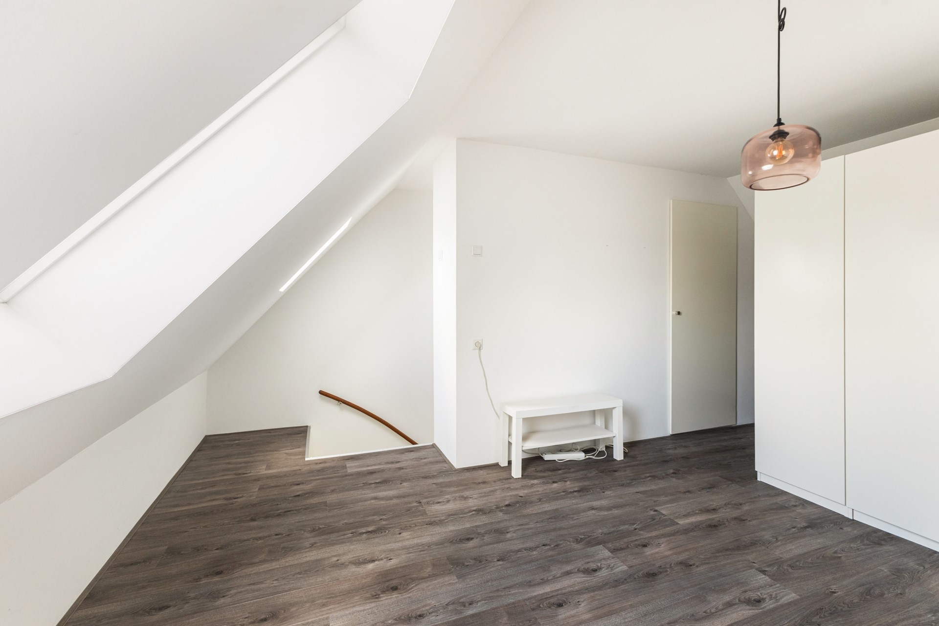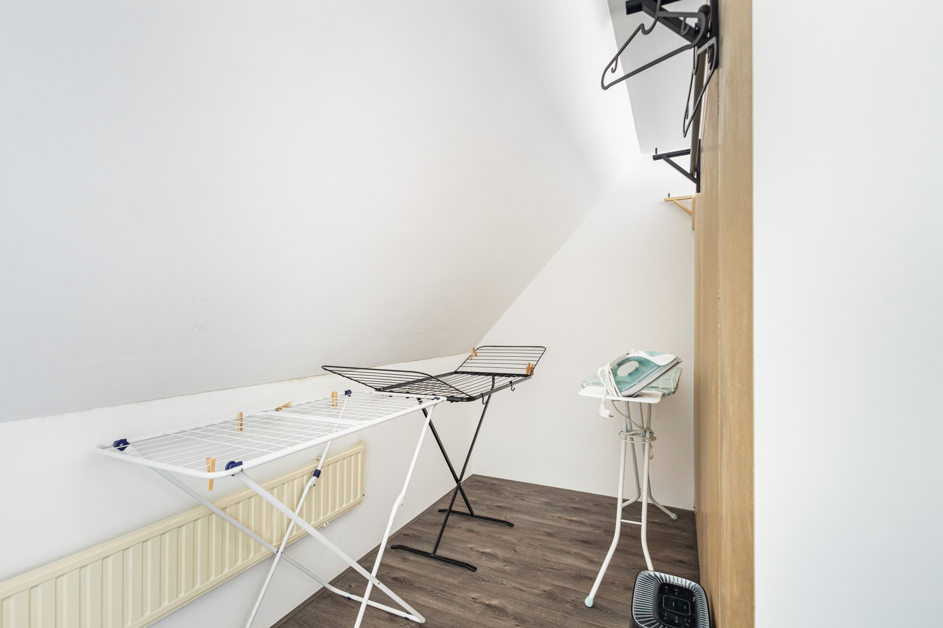 Via een vaste trap bereik je de zolderverdieping. Hier bevindt zich een grote slaapkamer met een Velux dakraam. Daarnaast is er een separate berging met wasruimte en de opstelling van de CV-ketel (Remeha Avanta, 2007).