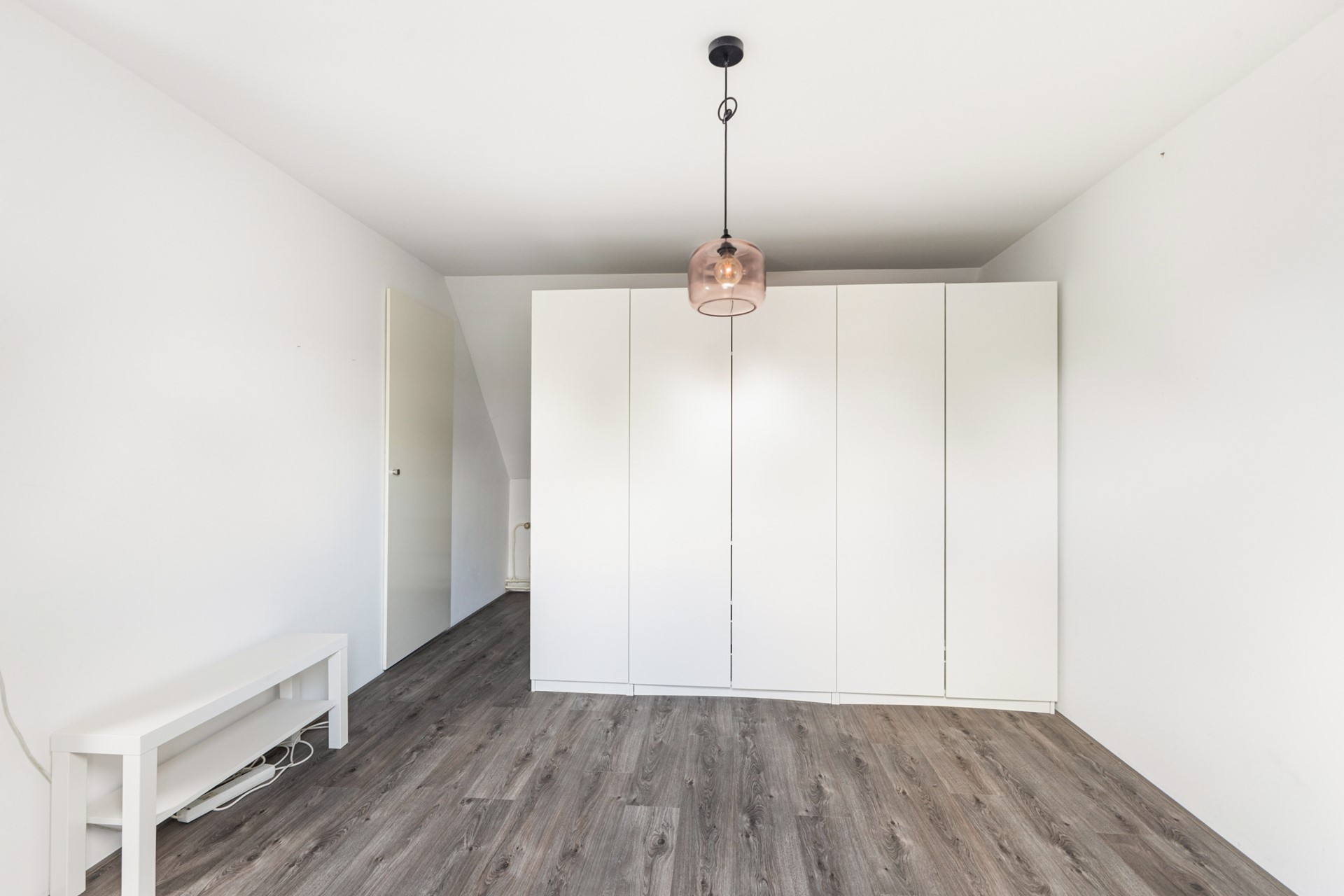 Via een draaitrap bereik je de overloop, die toegang biedt tot drie slaapkamers en de badkamer. Alle slaapkamers zijn voorzien van gestuukte wanden en een doorlopende laminaatvloer.