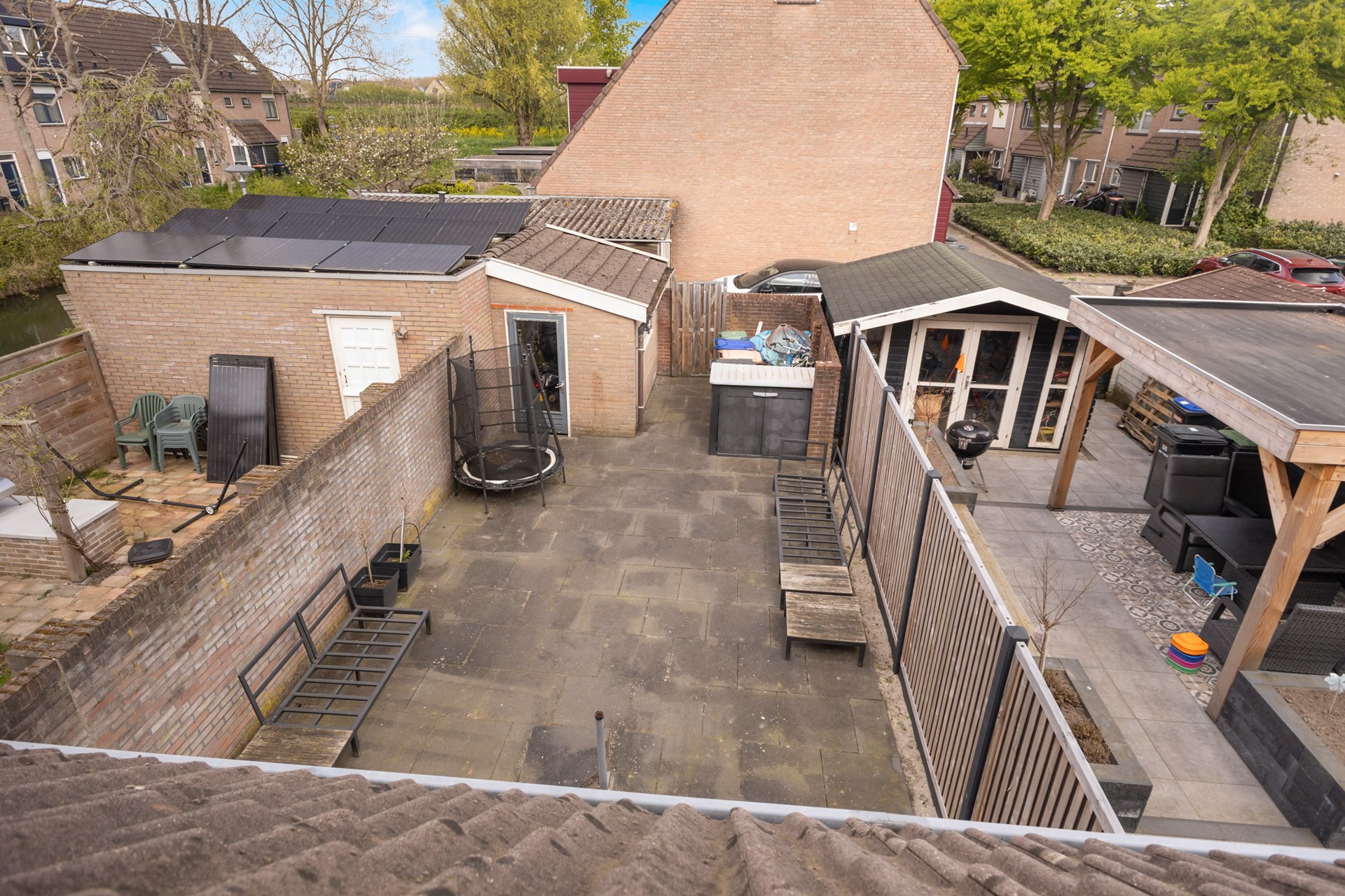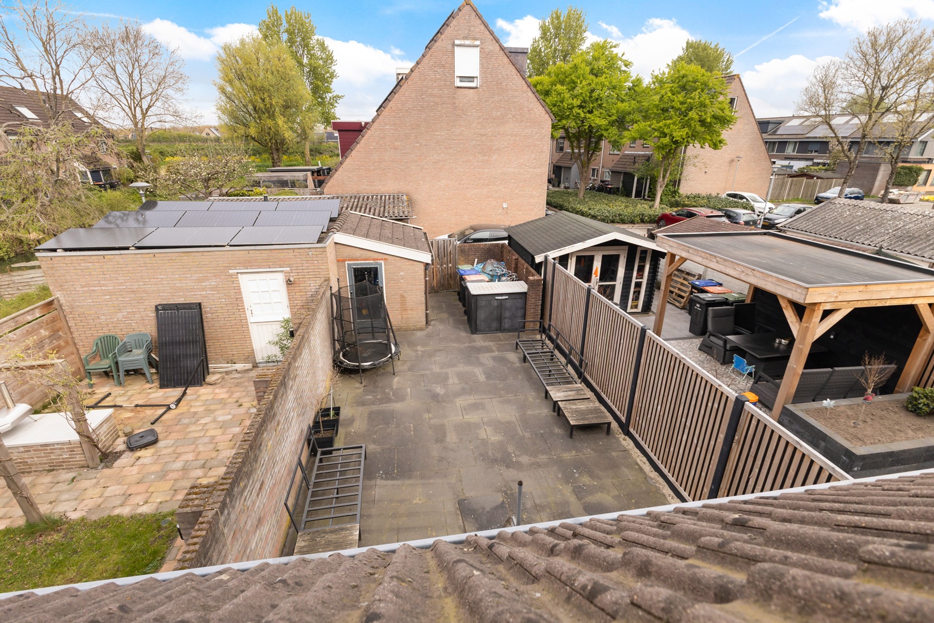 De ruime achtertuin is gesitueerd op het noordwesten en is grotendeels bestraat en beschikt over een berging, ideaal voor het opbergen van fietsen en tuinspullen.