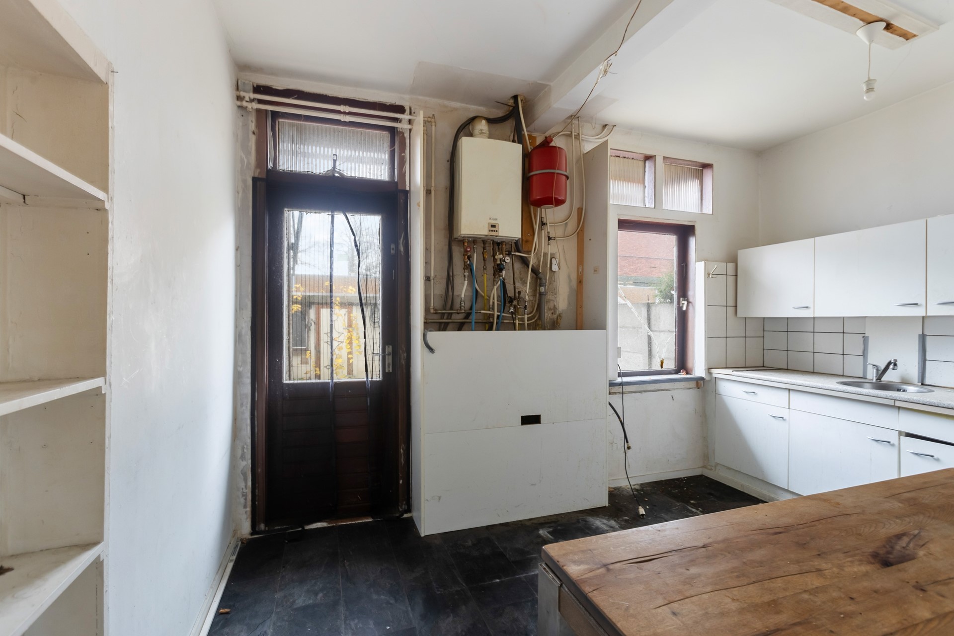 De keuken is eenvoudig en dient vervangen te worden, wat volop mogelijkheden geeft om hier iets geheel nieuws te creëren. Hier hangt de tevens de CV ketel (Remeha Avanta, 2014).