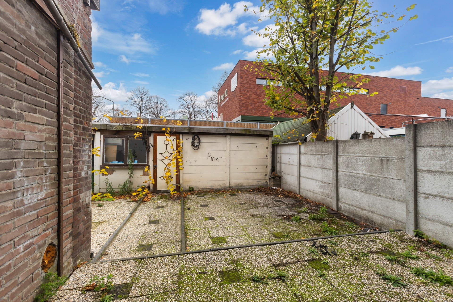 Via de keuken loop je zo de achtertuin in. De tuin is circa 8 meter diep, gelegen op het zonnige zuidwesten en daarmee perfect voor lange middagen en avonden buiten zitten. Achterin staat een ruime garage van ongeveer 18 m², ideaal voor opslag, fietsen of motor