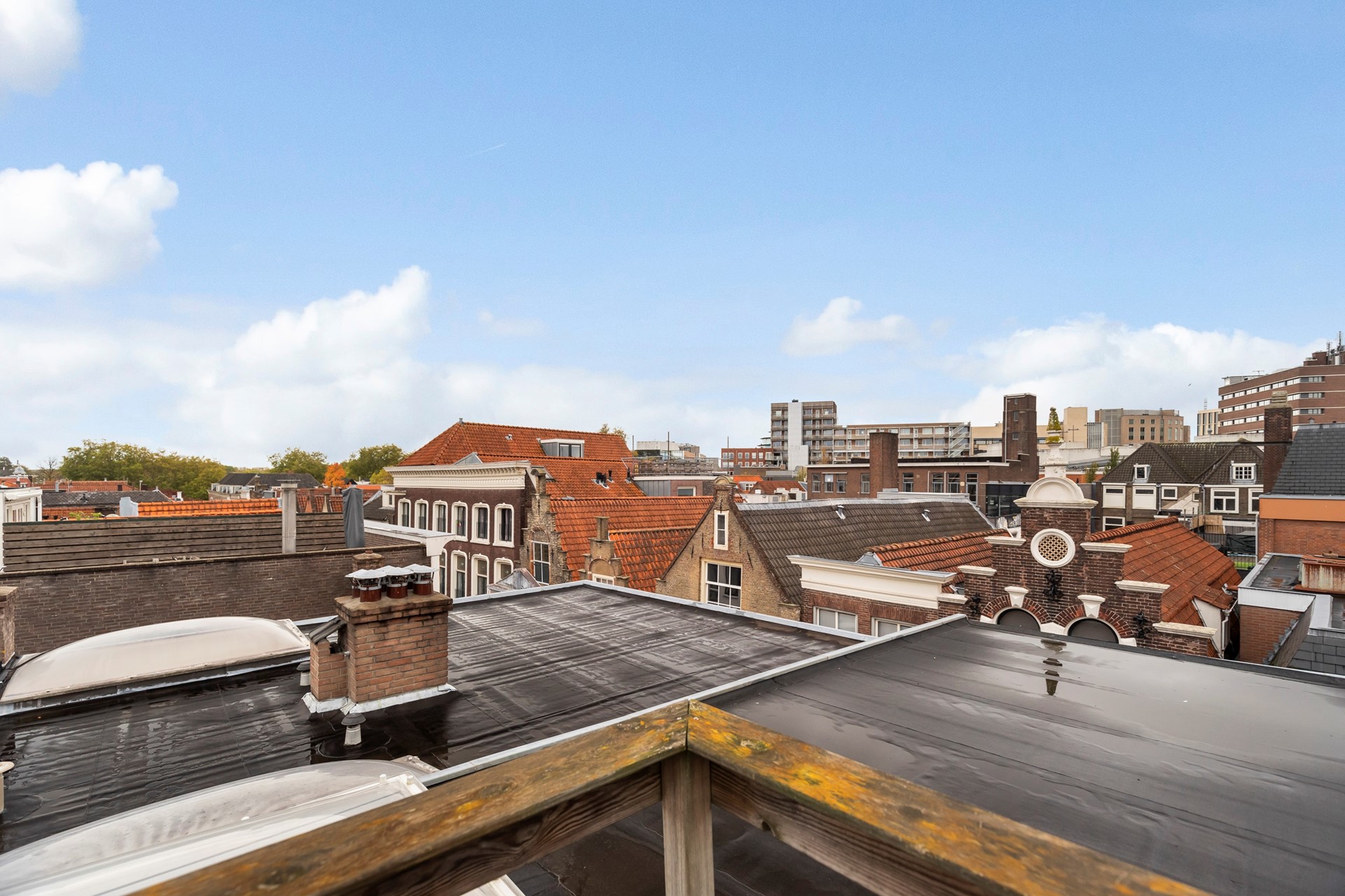 Via de achterste slaapkamer stap je het balkon op. Vanuit hier biedt een draaitrap toegang tot het ruime dakterras van circa 19 m², waar je kunt genieten van een fraai uitzicht over de stad.