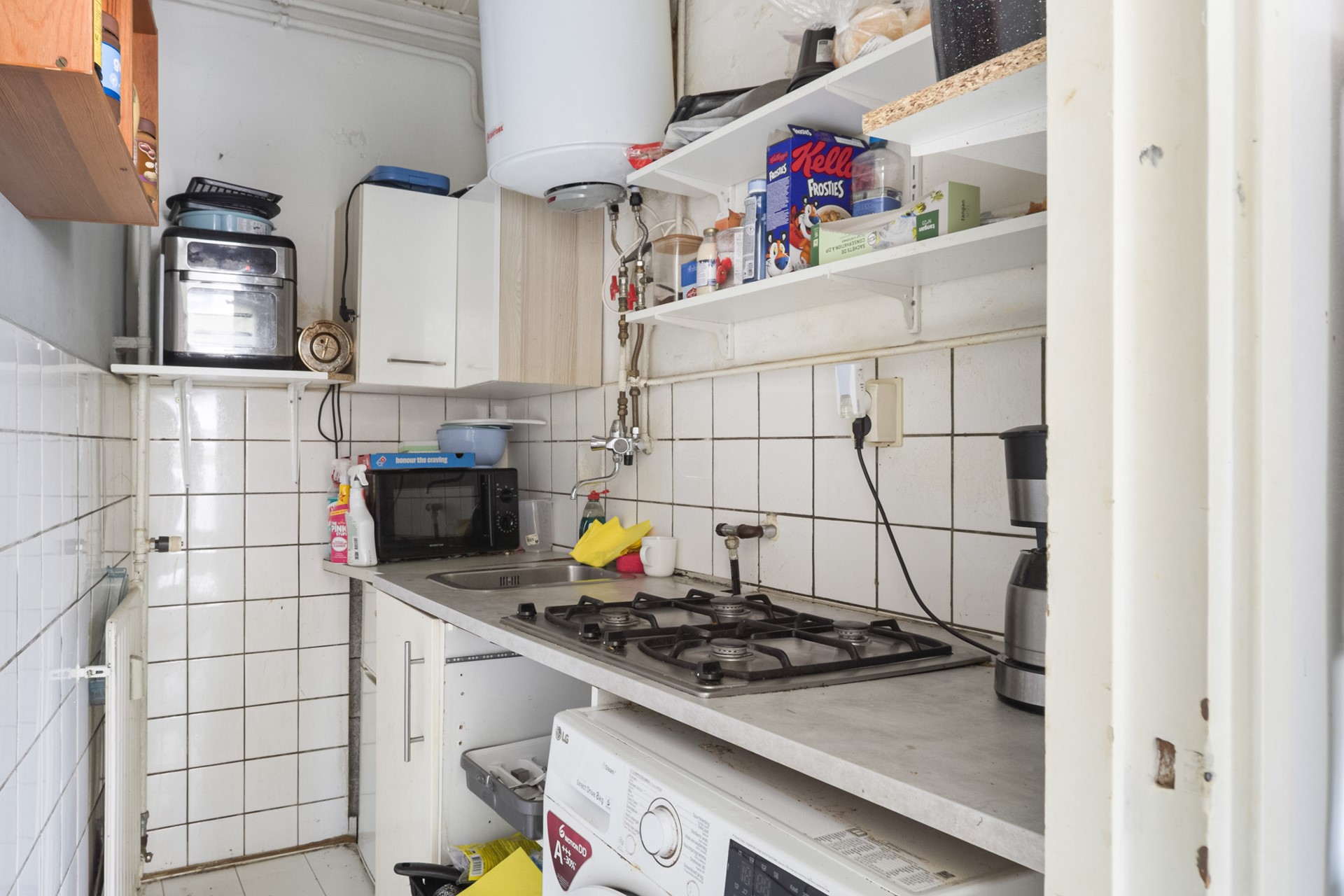 De keuken is bereikbaar vanuit de woonkamer en is toe aan een renovatie. Dit biedt de kans om een moderne en praktische keuken te creëren. Daarnaast is er een aansluiting aanwezig voor een wasmachine.