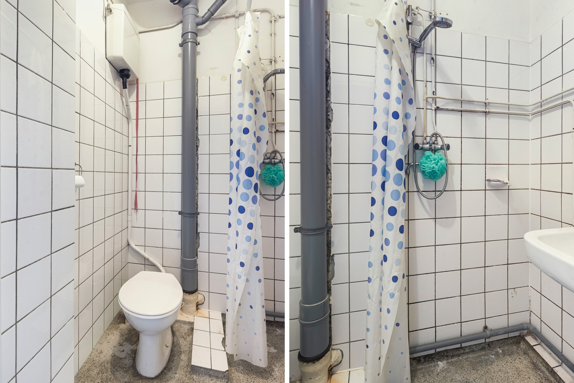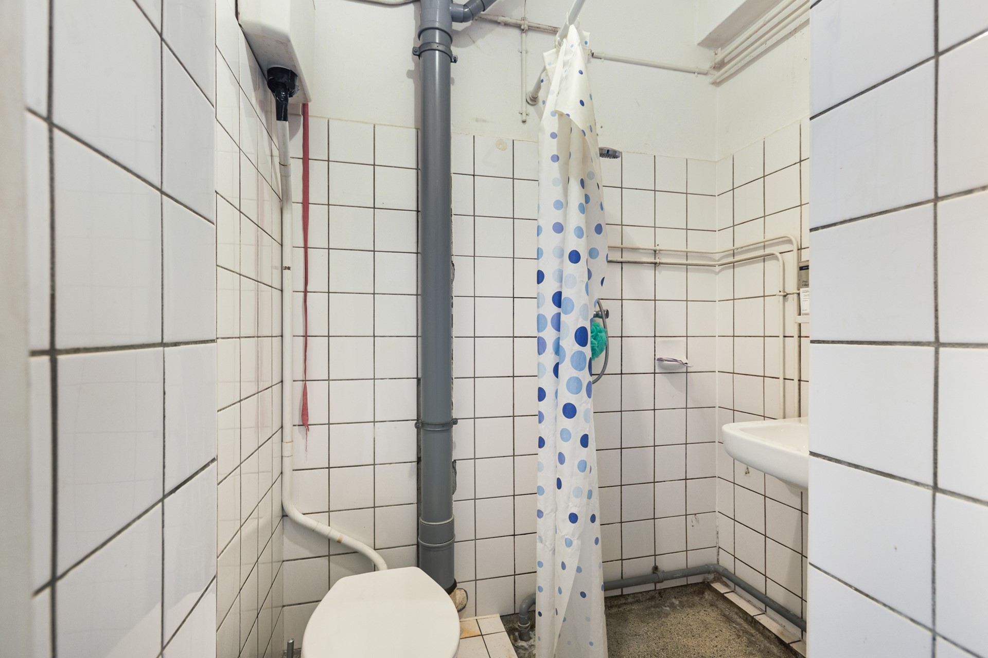 De badkamer is uitgerust met een wastafel, inloopdouche en toilet. De ruimte dient gerenoveerd te worden, waardoor je hier een stijlvolle, moderne badkamer kunt realiseren die volledig aansluit bij jouw wensen.