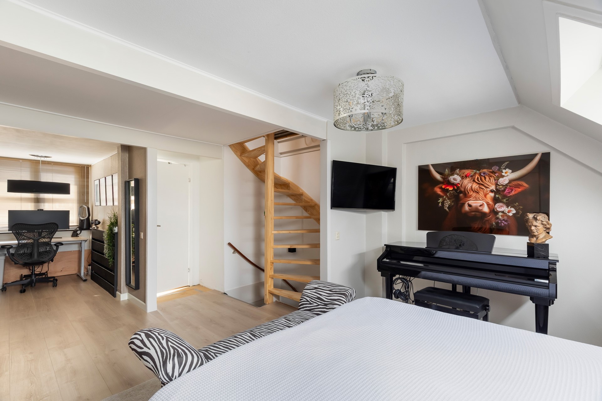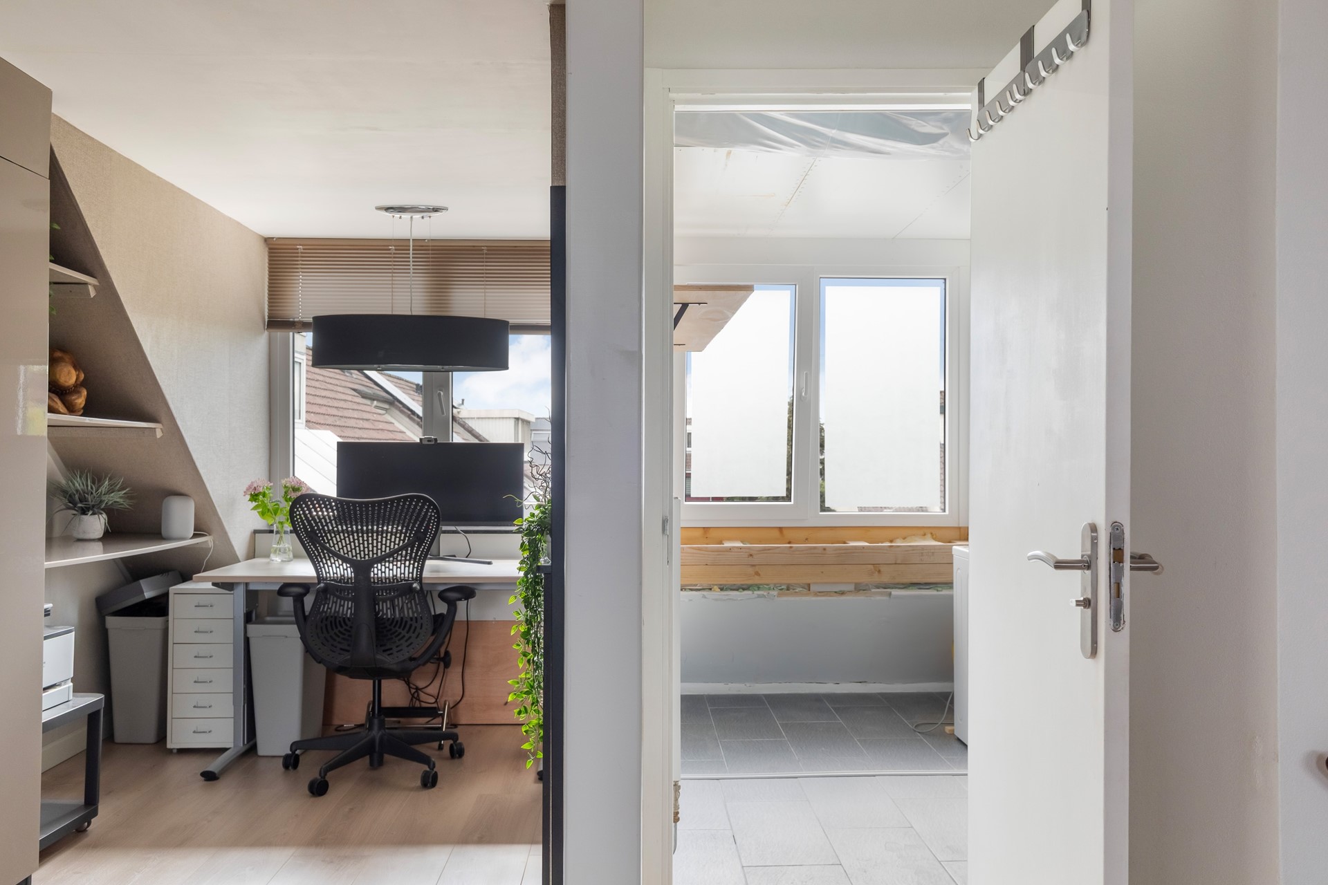 De werk- studeerkamer is gelegen aan de achterzijde van de woning en voorzien van een dakkapel, die doorloopt tot de badkamer.