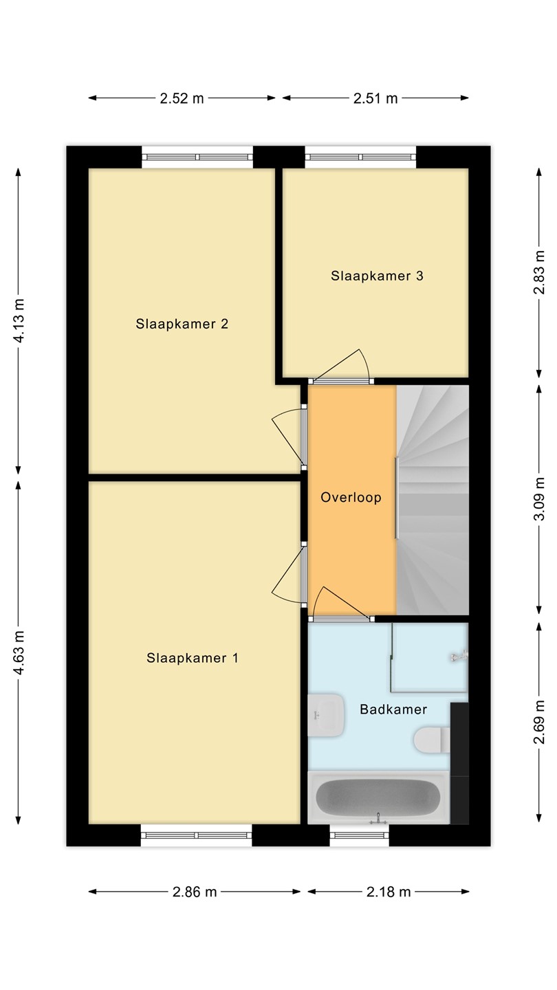 - Drie slaapkamers op de eerste verdieping, waarvan twee met airconditioning