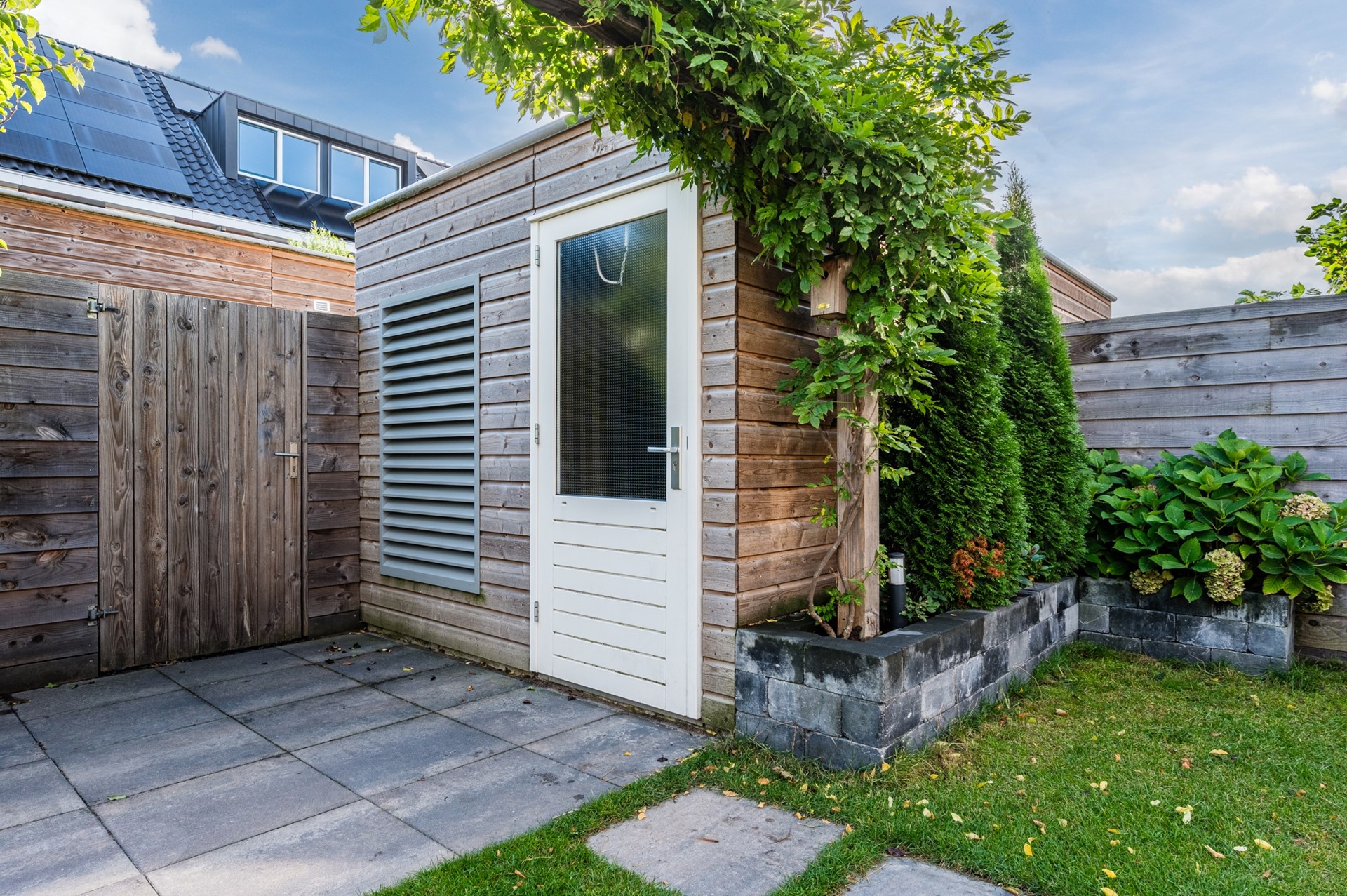 - Vrijstaande houten berging, tuin via zijkant bereikbaar