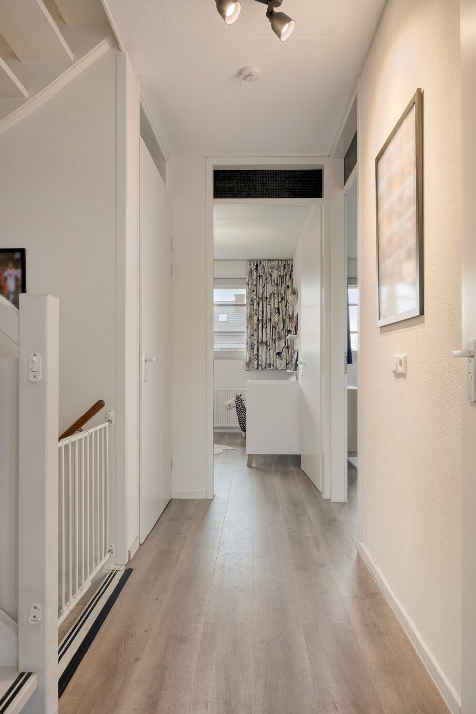 De tweede verdieping biedt een volwaardige vierde slaapkamer en een praktische ruimte voor de witgoedaansluitingen, cv-installatie en extra bergruimte.