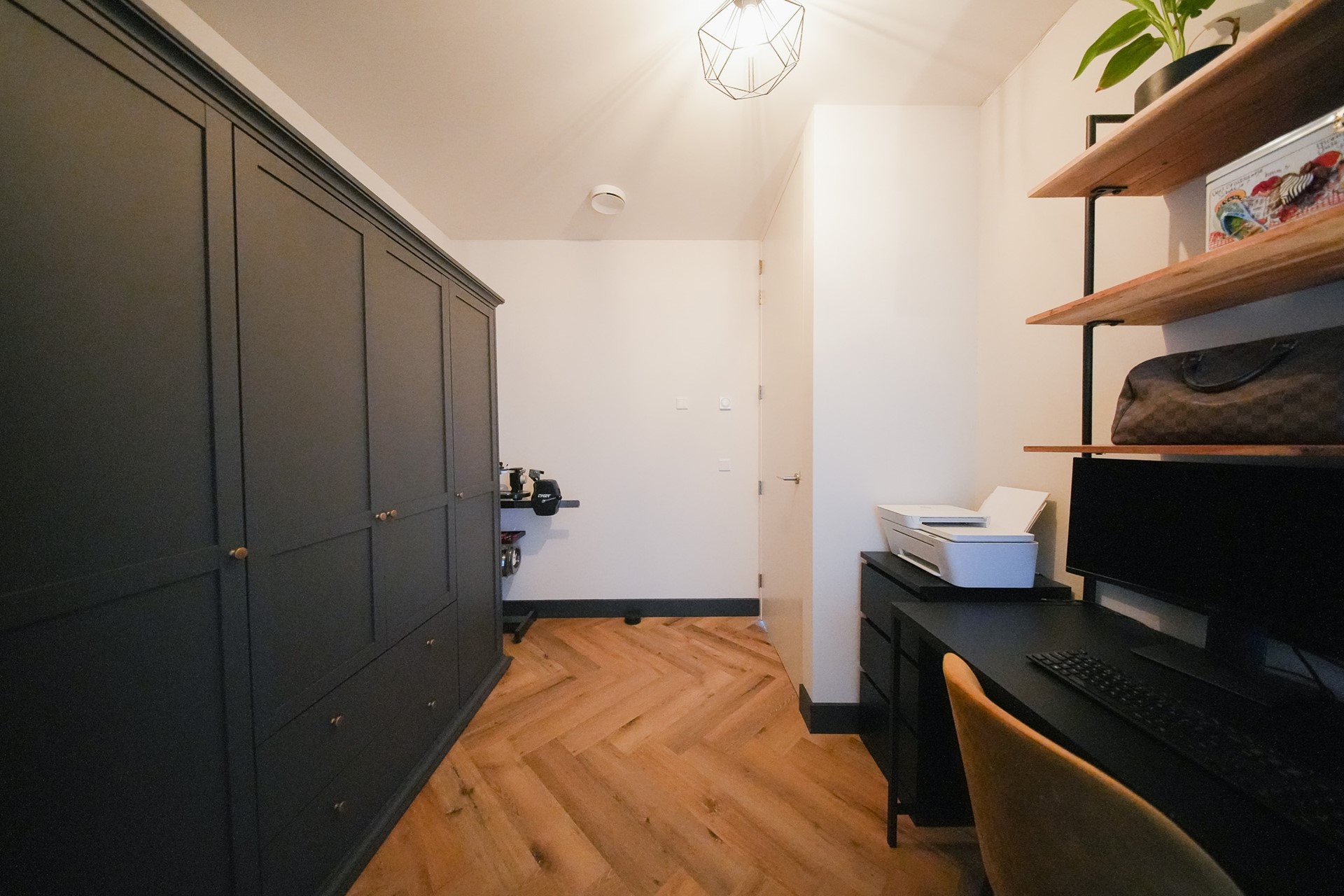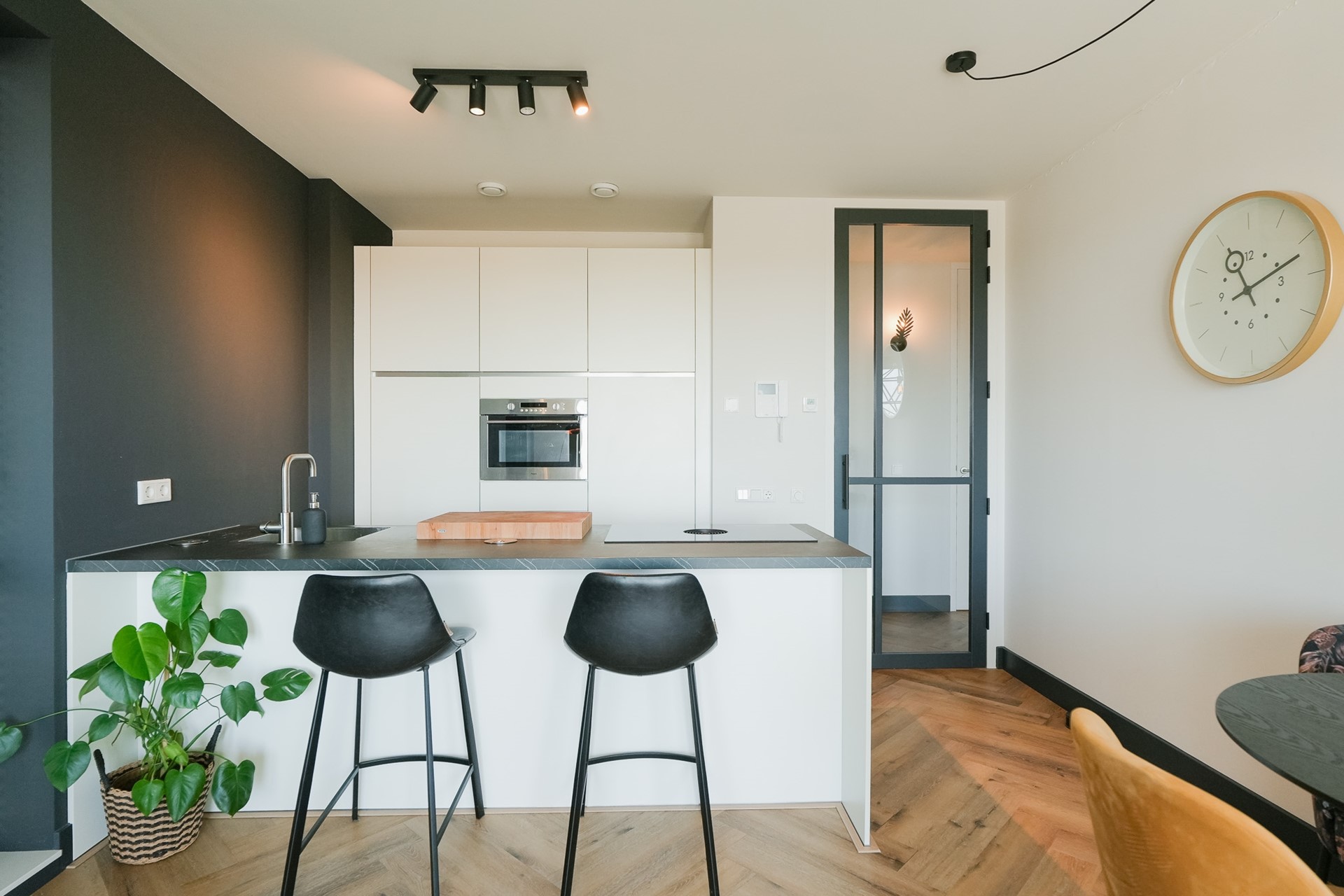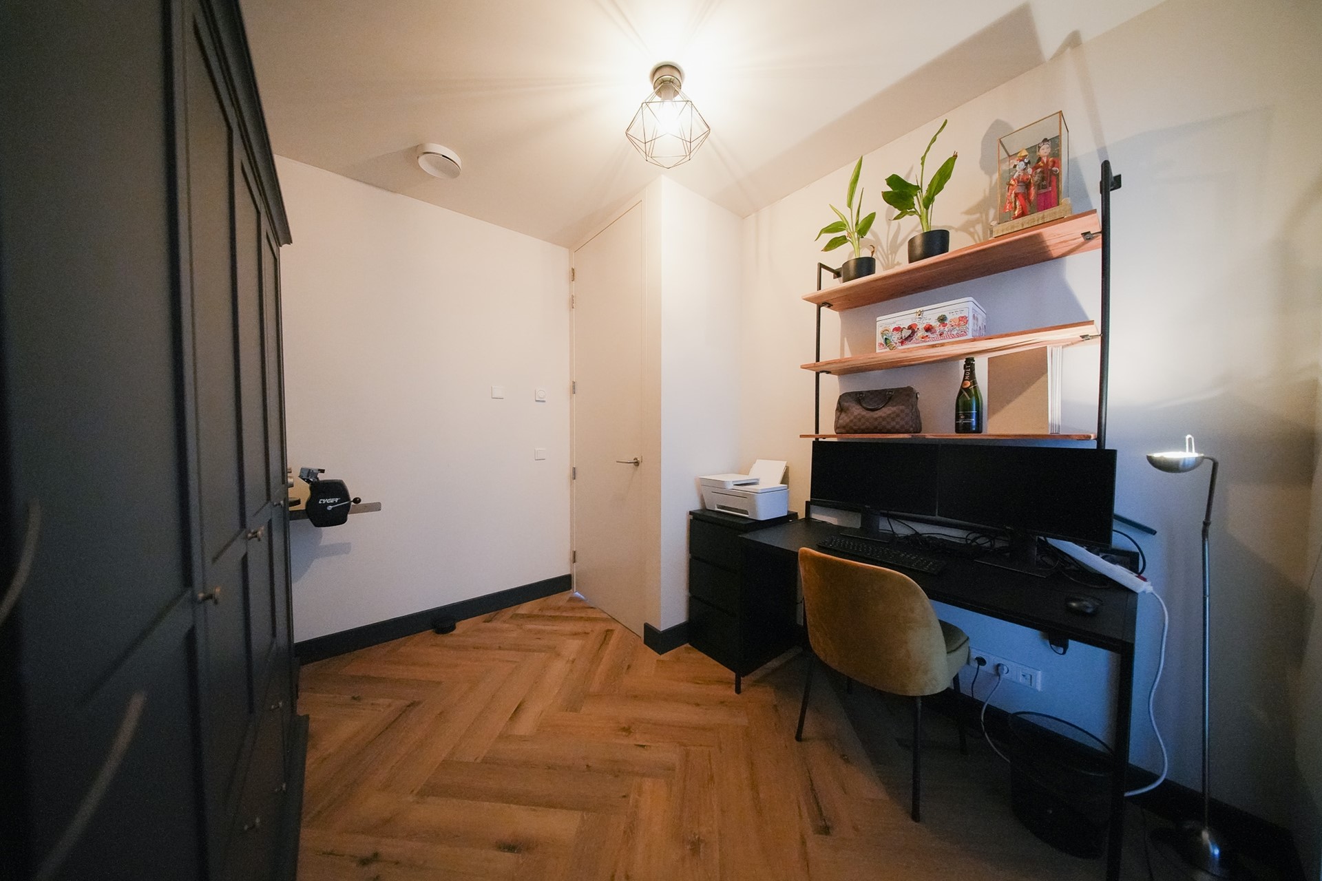 Het appartement beschikt over twee slaapkamers. De hoofdslaapkamer is ruim. De tweede kamer doet nu dienst als homeoffice maar kan ook perfect als slaapkamer gebruikt worden. Door het gehele apartement vind je hoogwaardige afwerking met een PVC-vloer en deuren totaan het plafond.