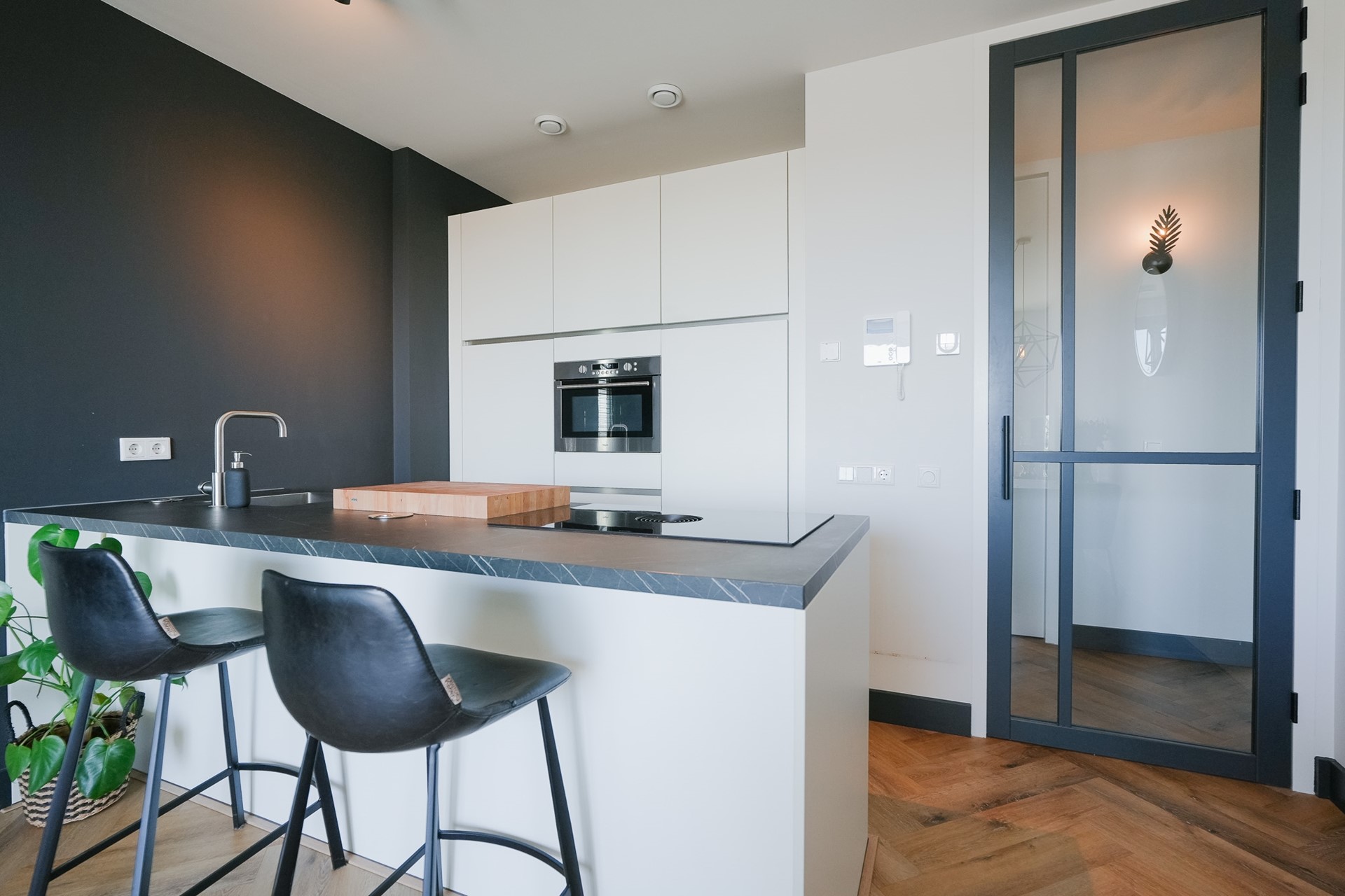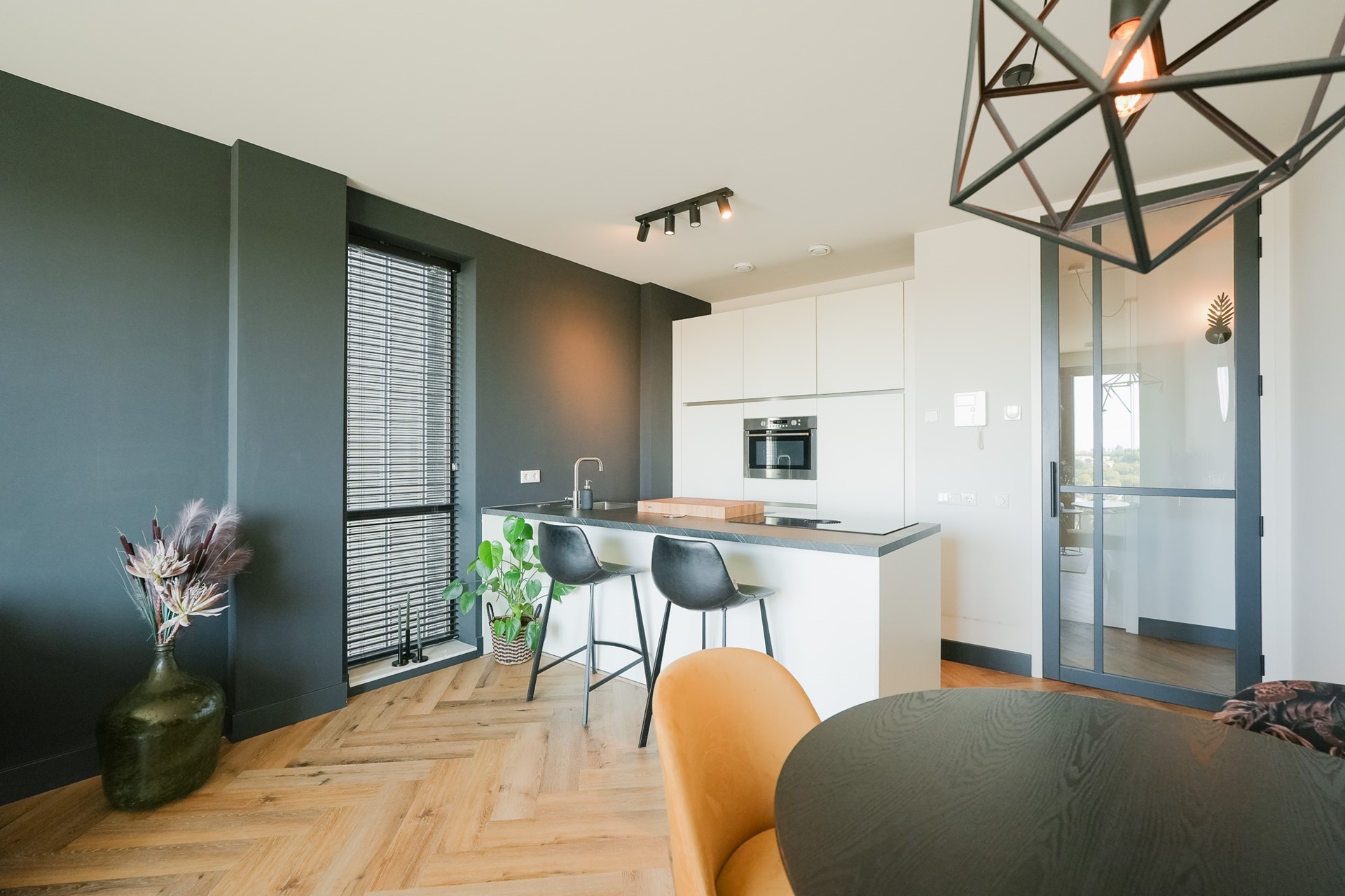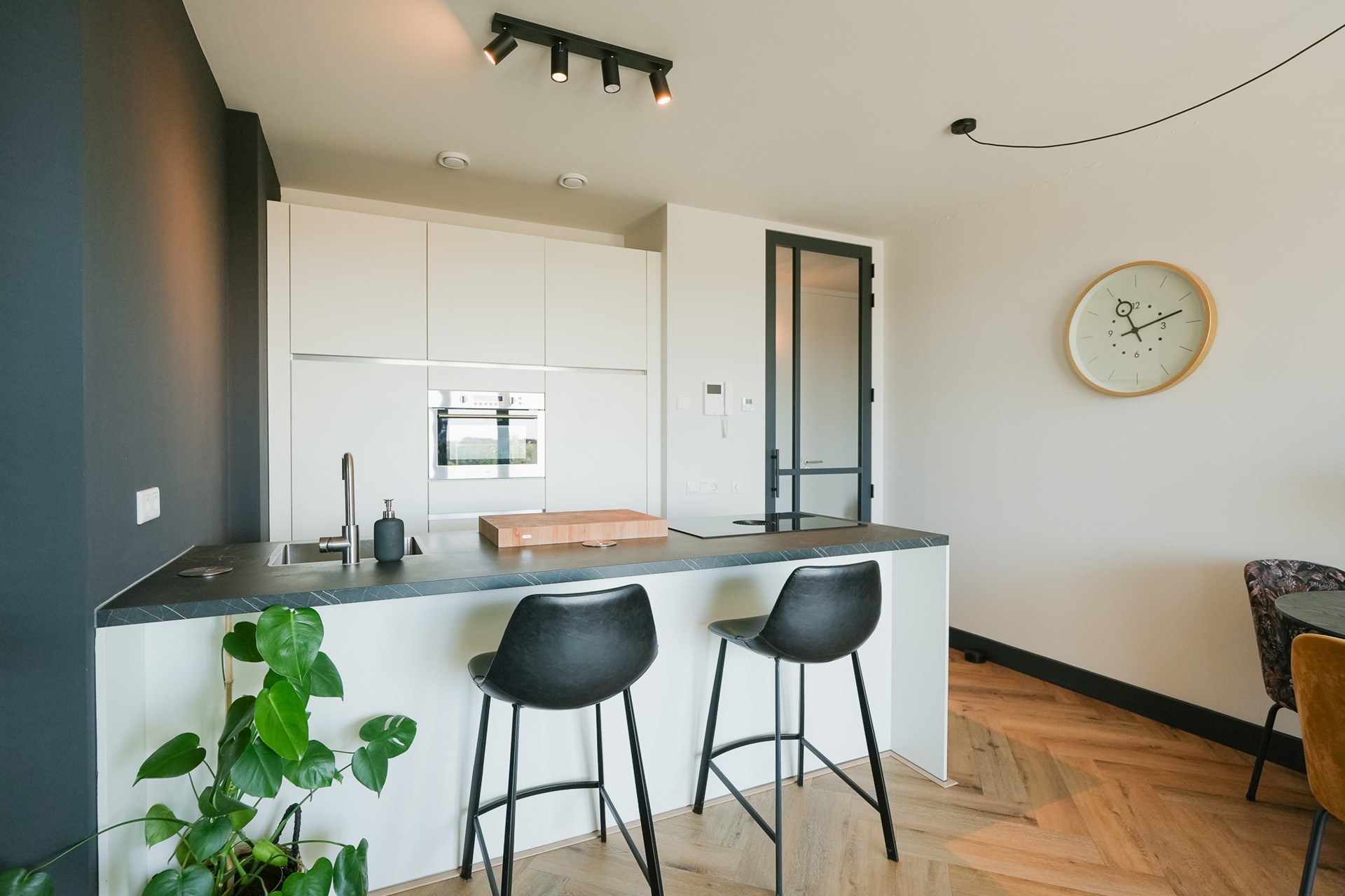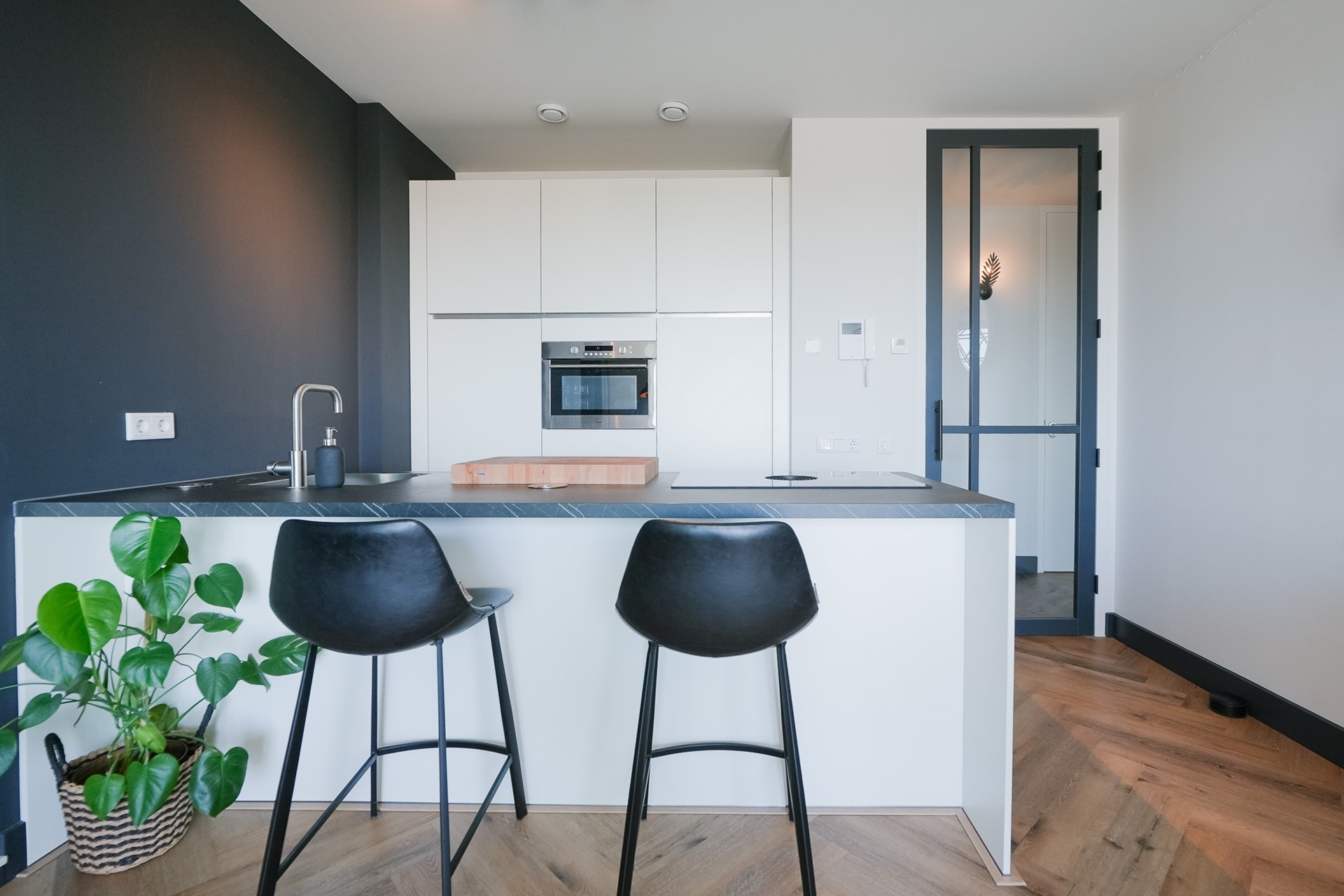 Het appartement beschikt over twee slaapkamers. De hoofdslaapkamer is ruim. De tweede kamer doet nu dienst als homeoffice maar kan ook perfect als slaapkamer gebruikt worden. Door het gehele apartement vind je hoogwaardige afwerking met een PVC-vloer en deuren totaan het plafond.