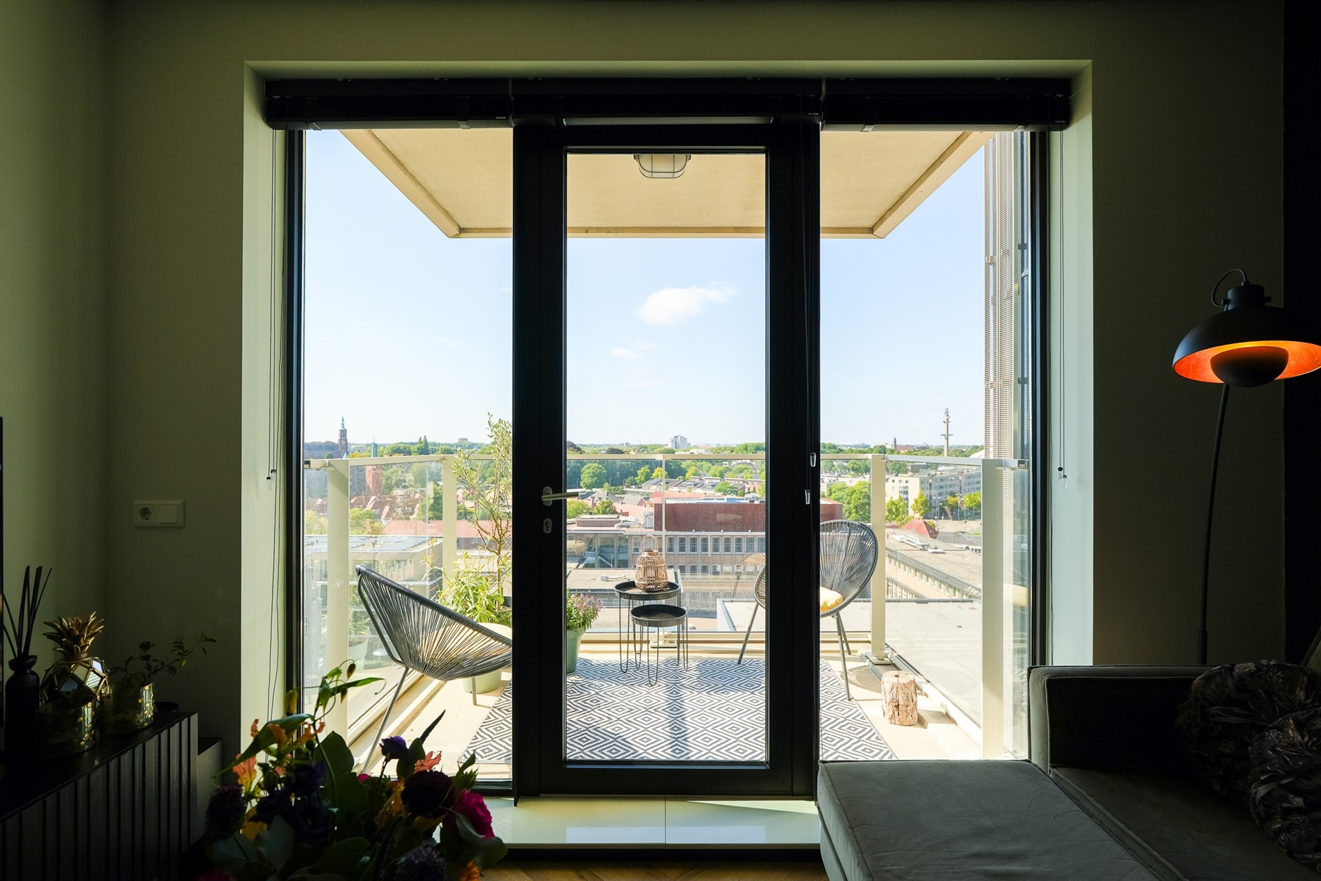 Dit appartement bevindt zich op de 8e verdieping en biedt een geweldig uitzicht over de Eindhoven inclusioef het Evoluon. De grote raampartijen zorgen voor een fijne natuurlijke lichtinval.
