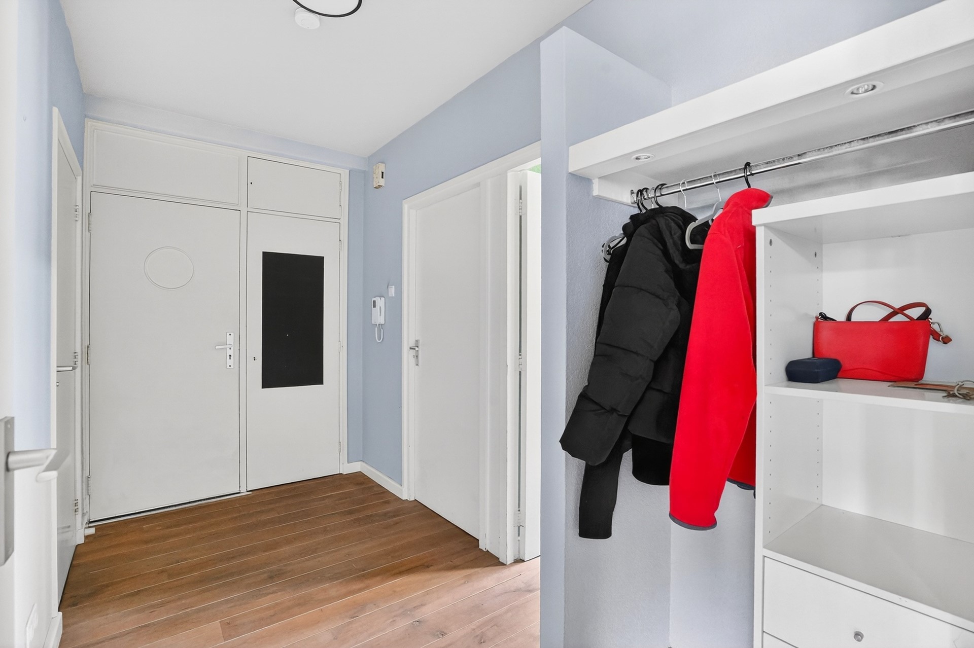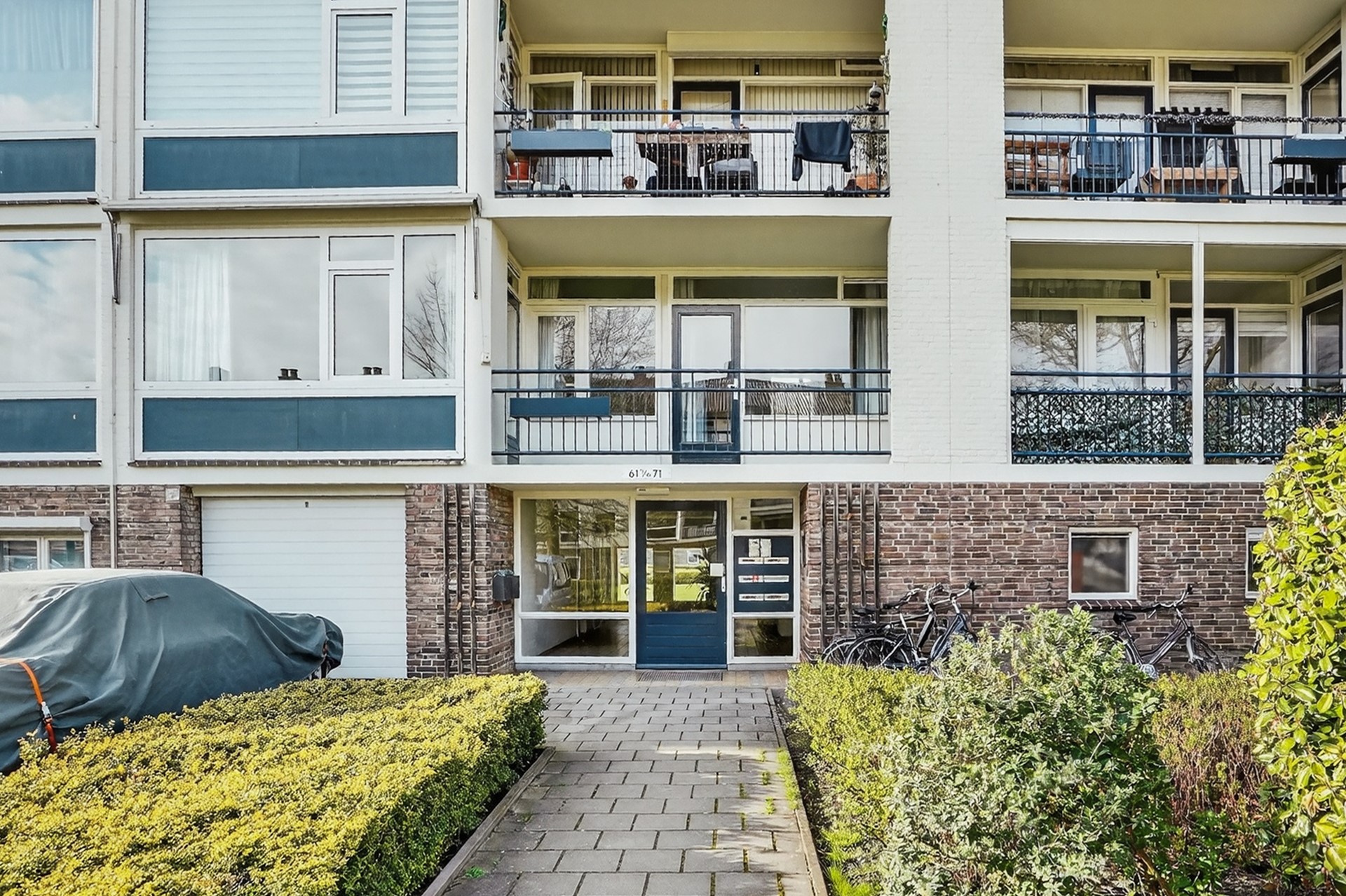 De woning op nummer 61 verwelkomt u en geeft toegang tot de hal/gang die op haar beurt toegang biedt tot een inbouwkast, de twee slaapkamers, een toiletruimte en de royale woonkamer. Vanuit de woonkamer zijn twee balkons, de keuken en via een doorloop de badkamer bereikbaar.
