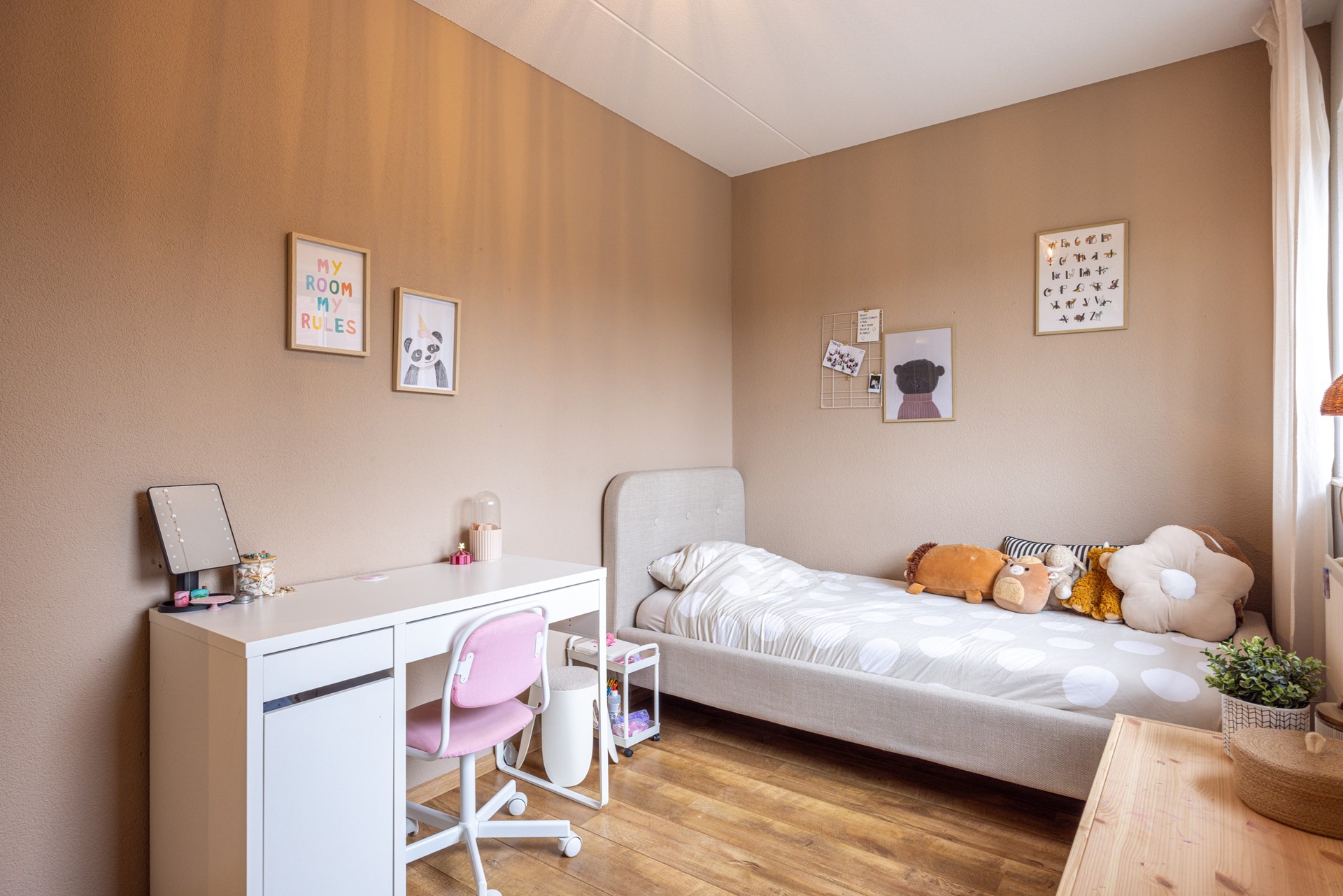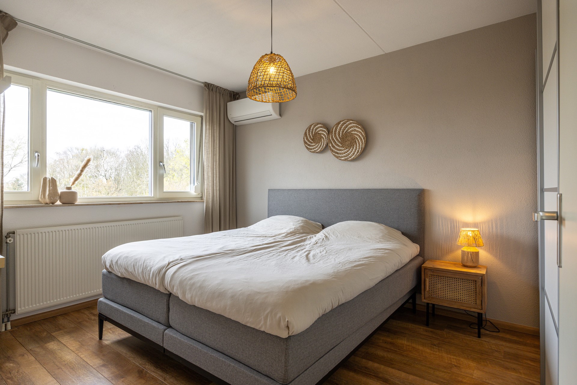 De slaapkamers zijn allen van goed formaat en eveneens voorzien van een laminaatvloer. Dankzij de raampartijen zijn de kamers licht en prettig in gebruik. Daarnaast zijn ze uitgerust met rolluiken. De hoofdslaapkamer aan de achterzijde beschikt over een airco-installatie, waarmee zowel gekoeld als verwarmd kan worden.