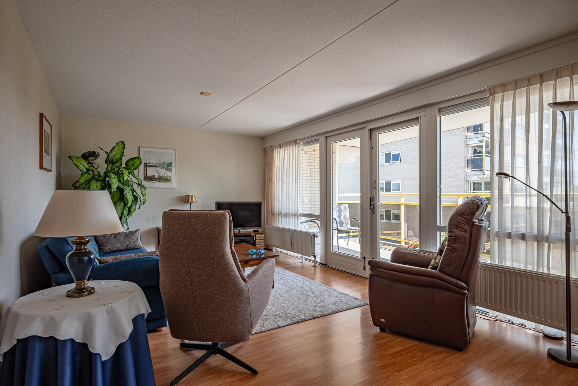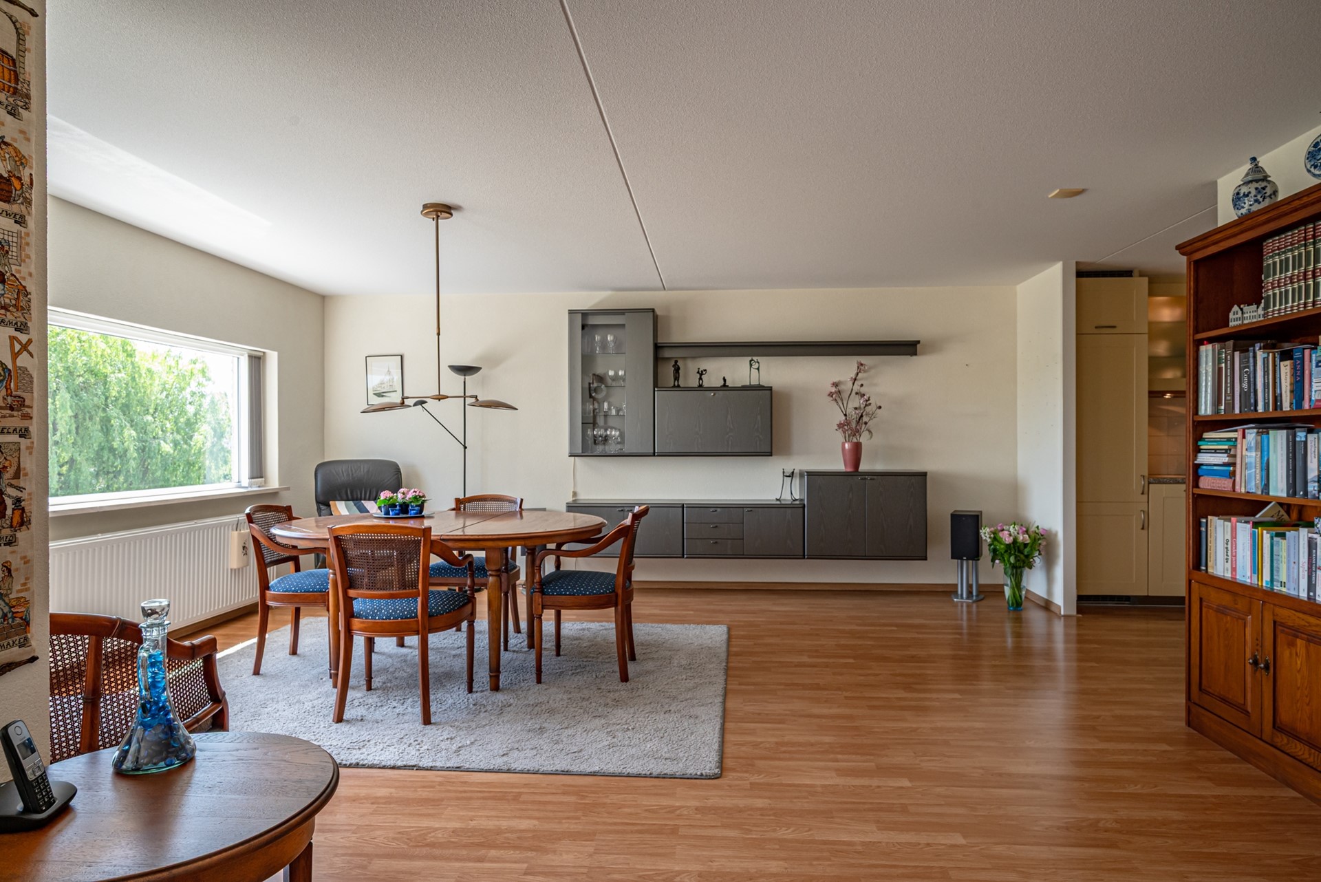 De woonkamer is groot en over de gehele breedte van het appartement. Dankzij de grote raampartij is er veel natuurlijk lichtinval aanwezig. Via de woonkamer komt u in de open keuken, hier is diverse inbouwapparatuur aanwezig. Vanuit de keuken komt u in de royale berging met wasmachine en droger aansluiting.