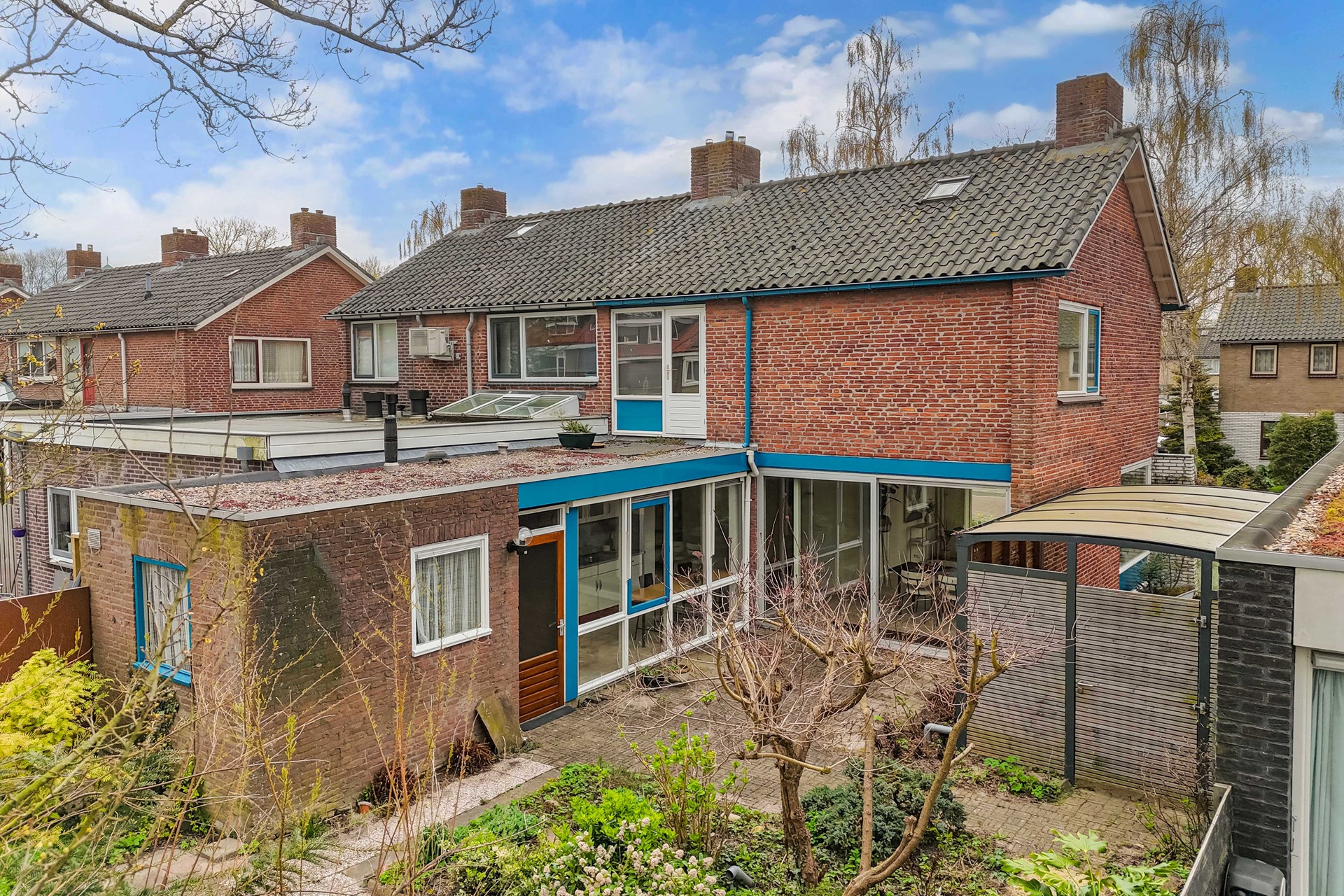 De diepe achtertuin van circa 120 m² is een echte meerwaarde: gelegen op het noordwesten geniet u hier van de middag- en avondzon. De tuin biedt volop ruimte om meerdere terrassen te creëren of een fijne plek voor kinderen om te spelen. De prachtige grote boom zorgt voor sfeer, karakter en natuurlijke beschutting. Daarnaast is de achtertuin bereikbaar via de carport naast de woning, maar ook via de steeg aan de achterzijde van de tuin, via welke de winkels ook eenvoudig binnendoor bereikbaar zijn.