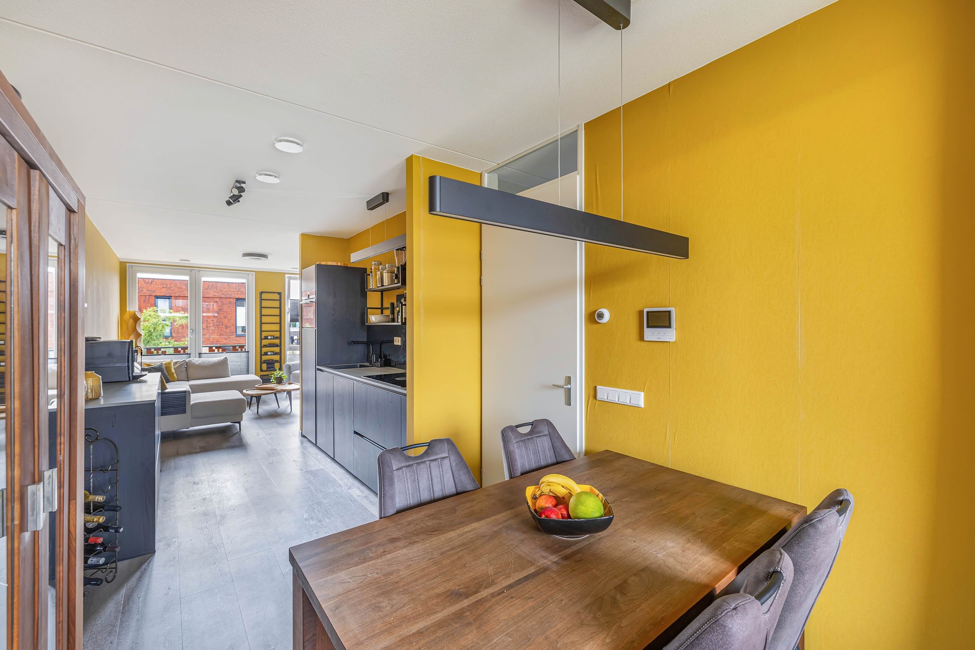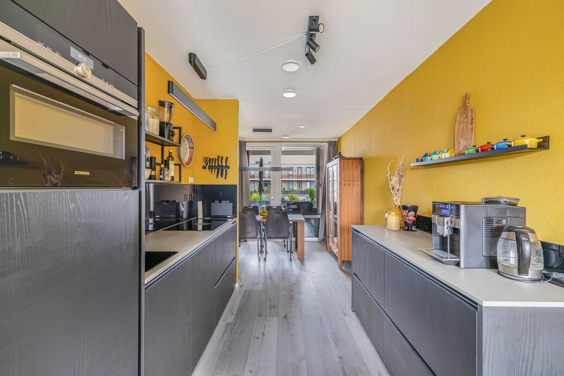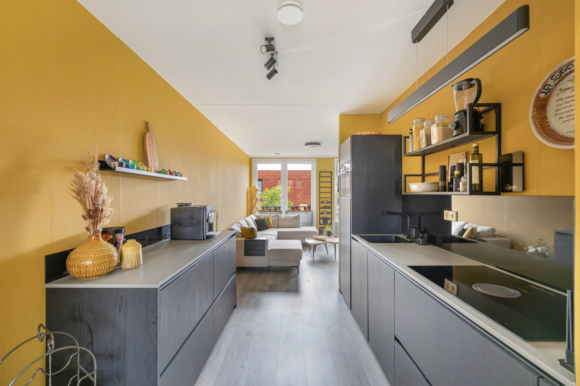 De woonkamer strekt zich uit over de volledige lengte van het appartement, met in het midden een moderne open keuken. Begin de dag met een kop koffie bij het Franse balkon op het oosten en geniet van de ochtendzon. ’s Avonds ontspant u op het deels overdekte dakterras, gelegen op het westen – perfect voor de avondzon. Het appartement beschikt over twee slaapkamers, een moderne badkamer en een separaat toilet.