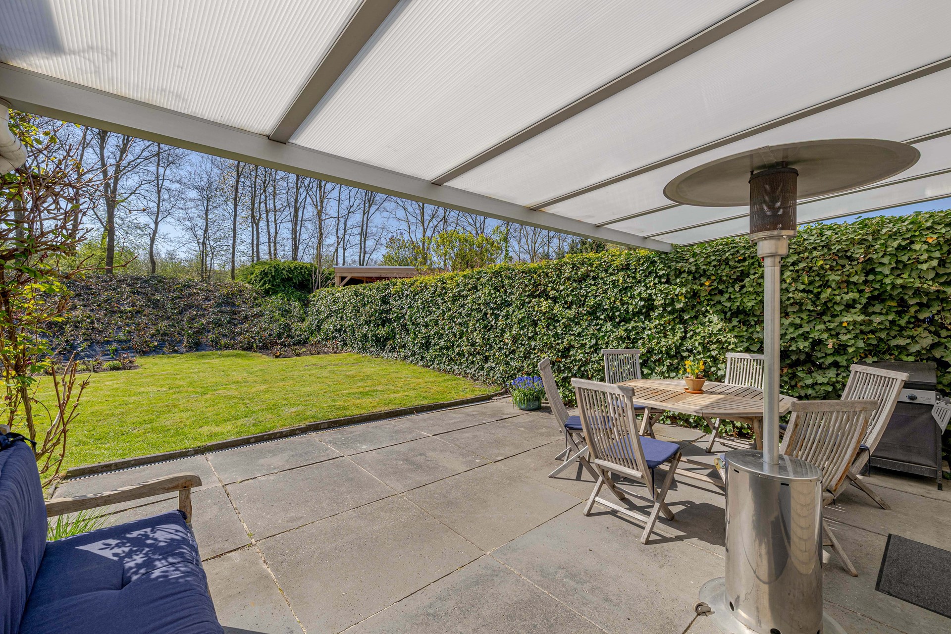 - Diepe, zonnige achtertuin op het zuiden (ca. 270 m²) met overkapping