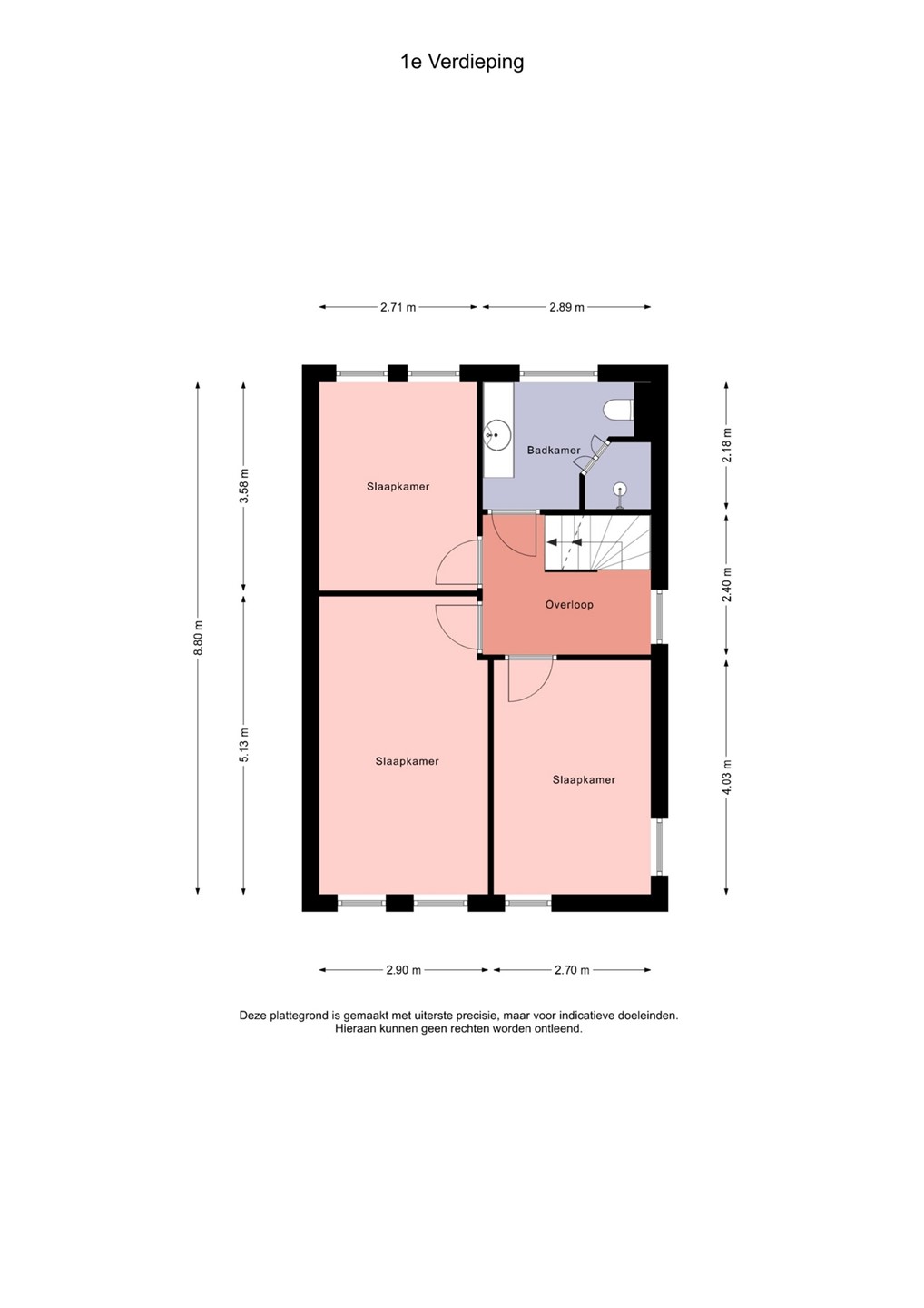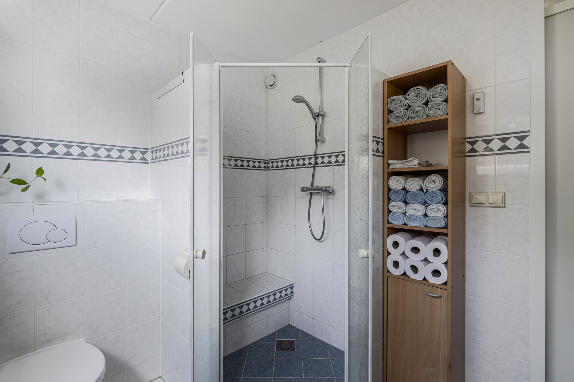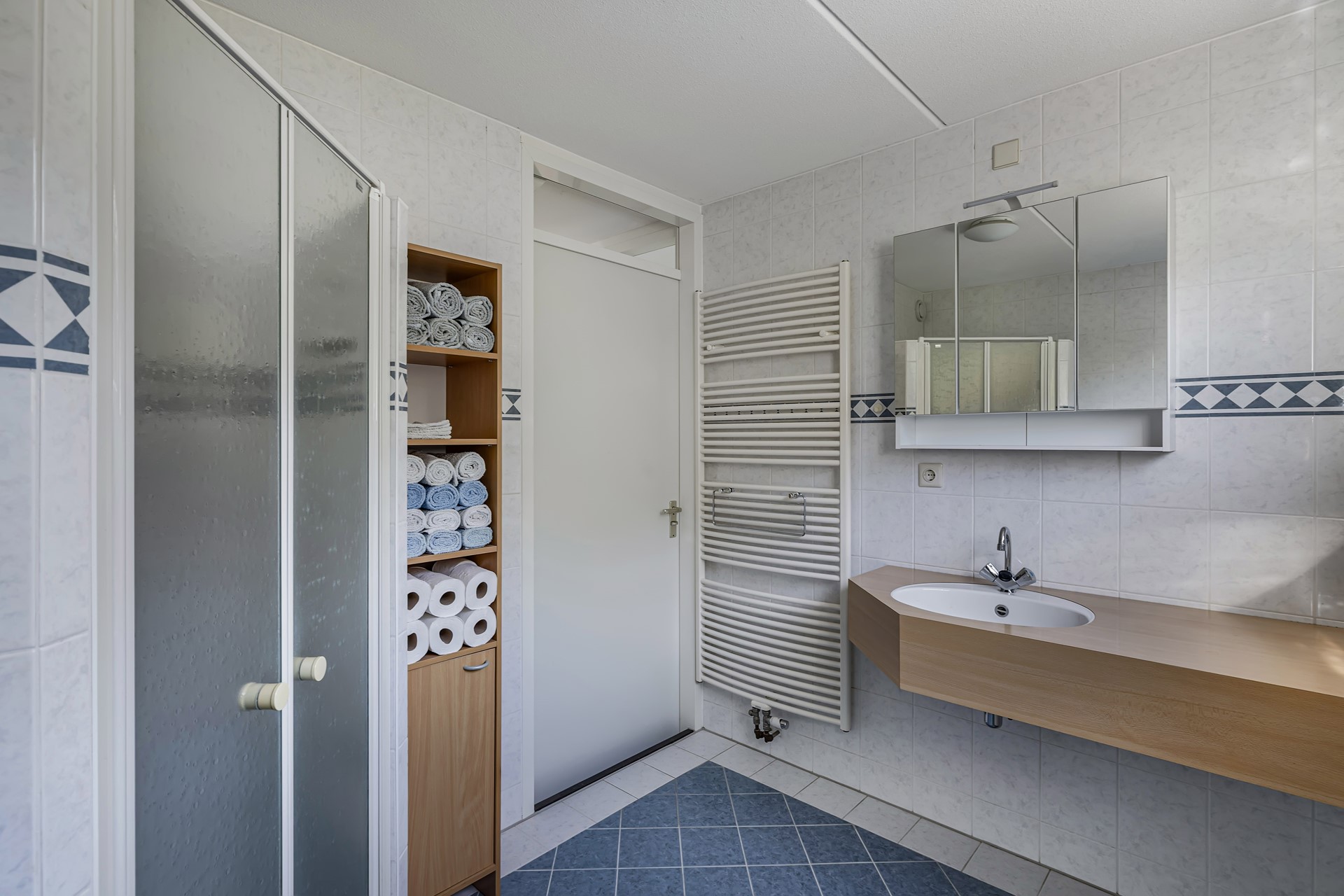 Op de eerste verdieping bevinden zich drie slaapkamers en de badkamer met douche, toilet en wastafelmeubel.