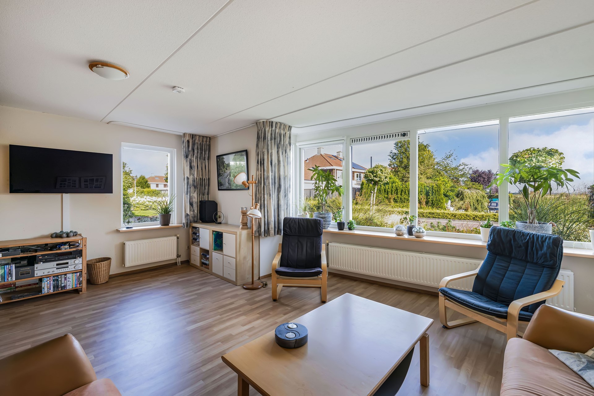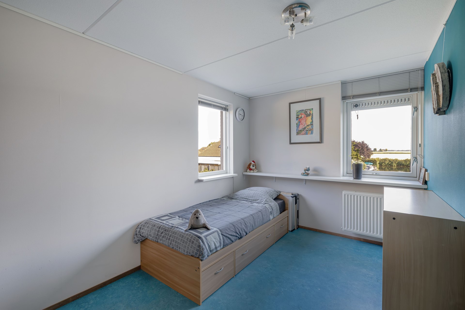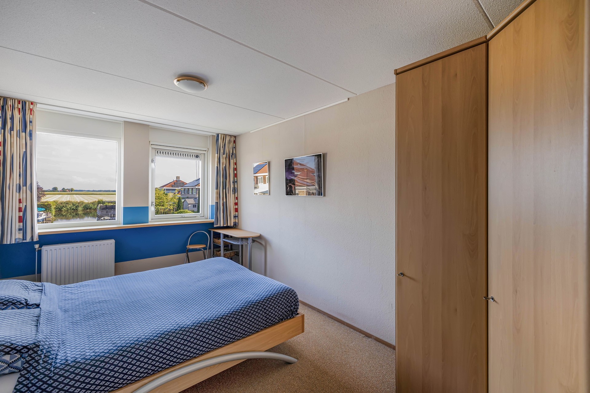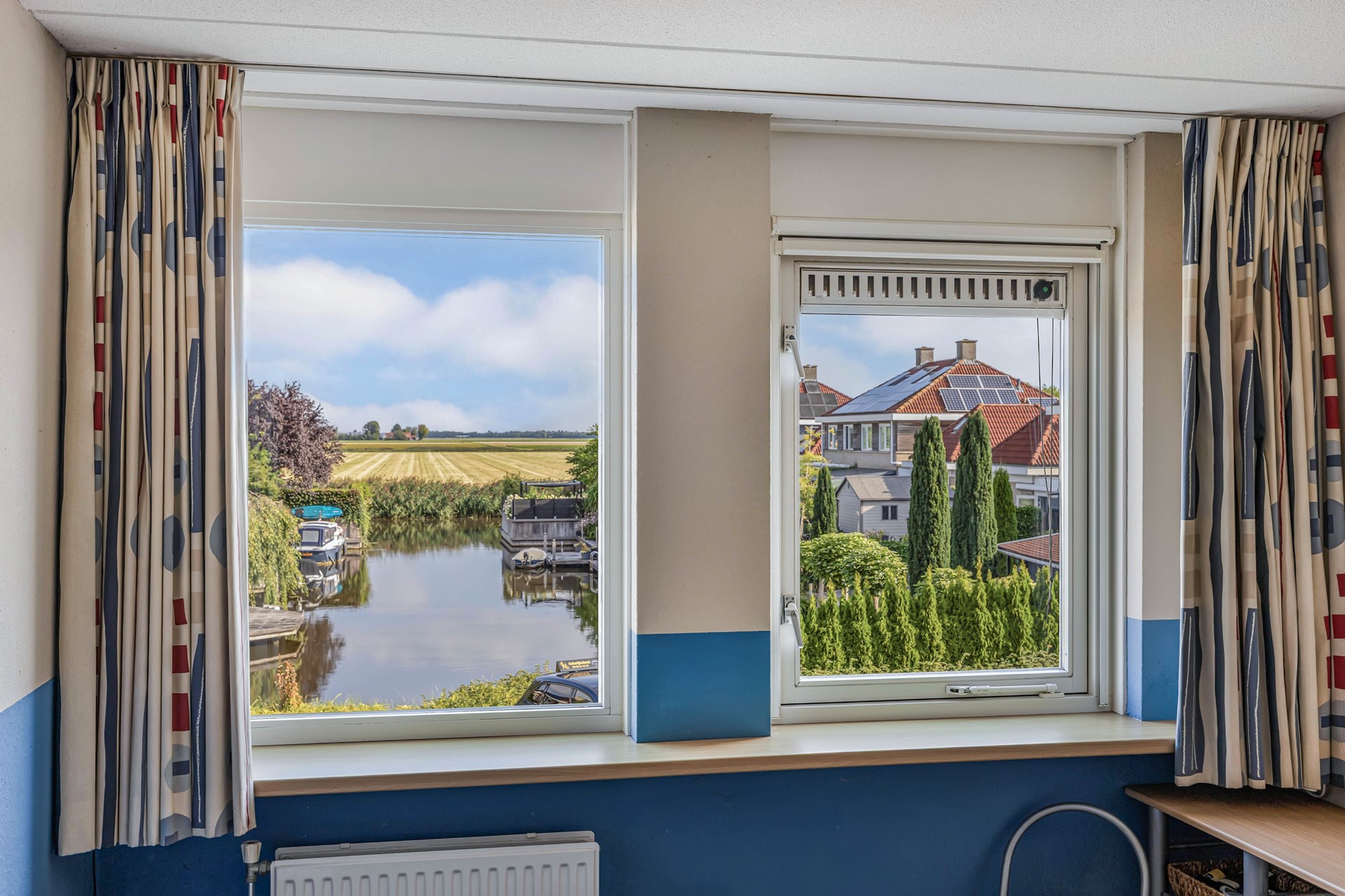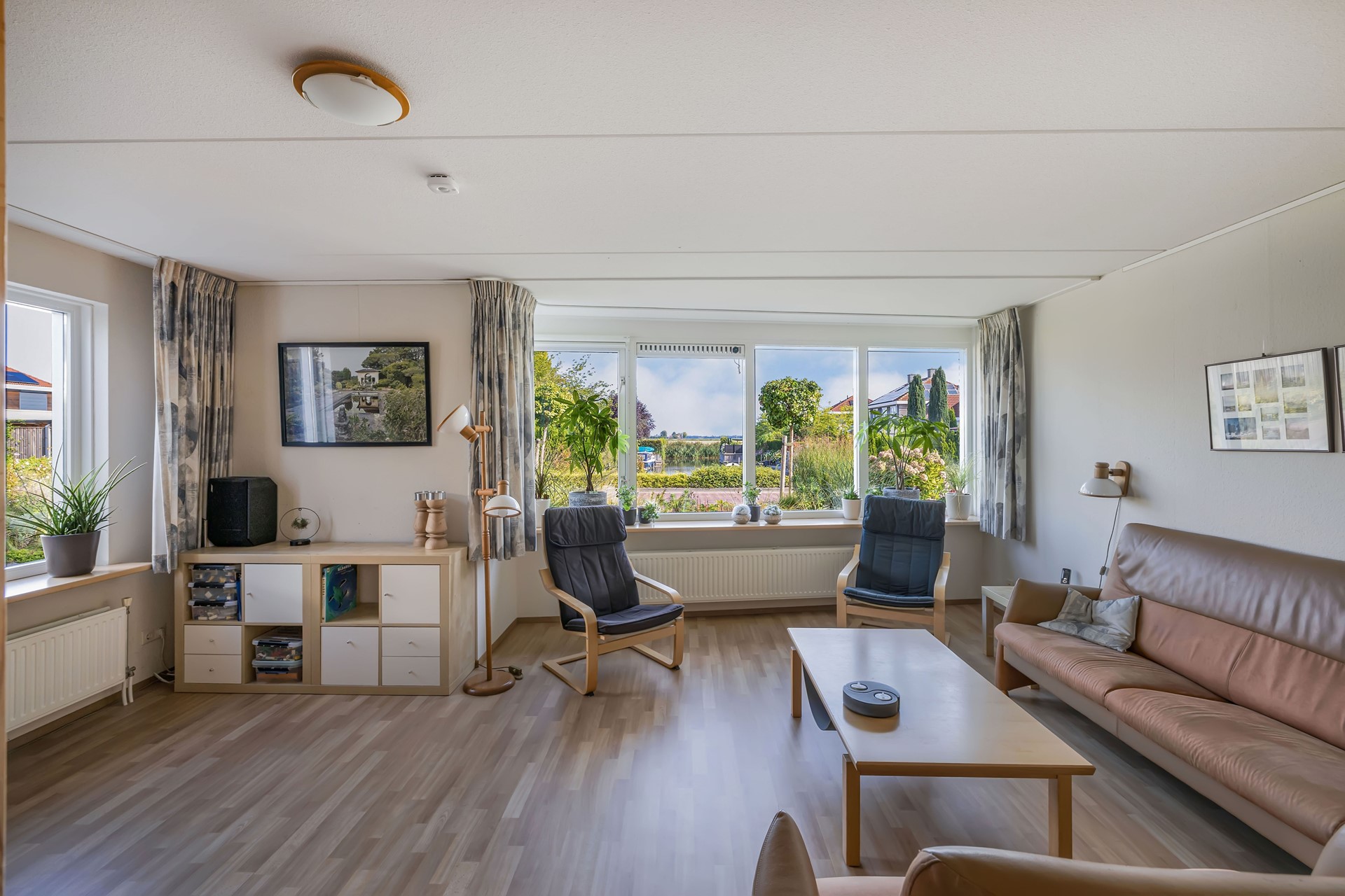 De lichte woonkamer met erker biedt een prachtig uitzicht over het water met daarachter de landerijen. De keuken aan de tuinzijde is praktisch ingedeeld en voorzien van diverse inbouwapparatuur. Daarachter bevindt zich de bijkeuken met wasmachine-opstelling. De aangebouwde stenen garage wordt momenteel deels gebruikt als kantoor-/hobbyruimte.