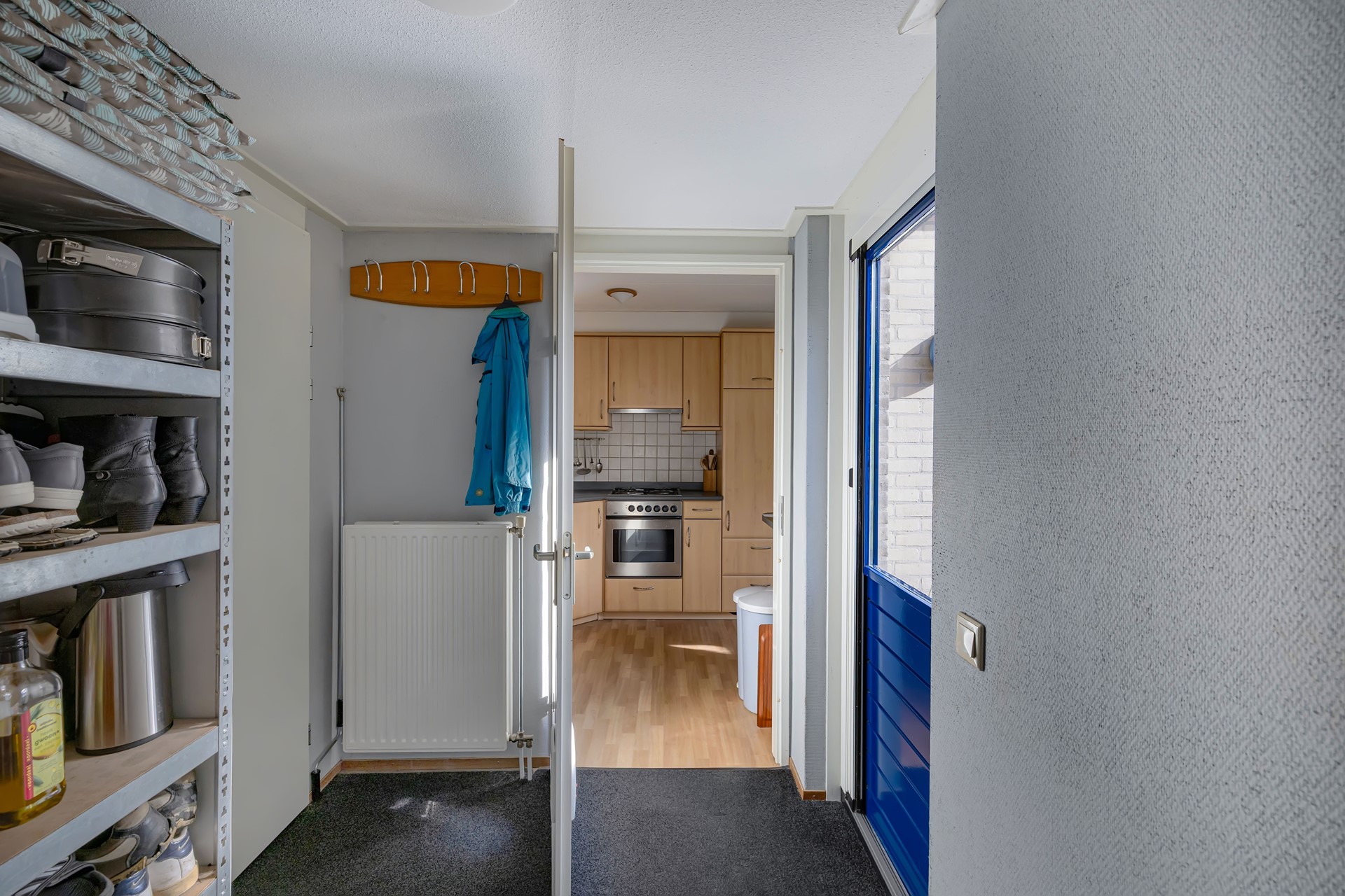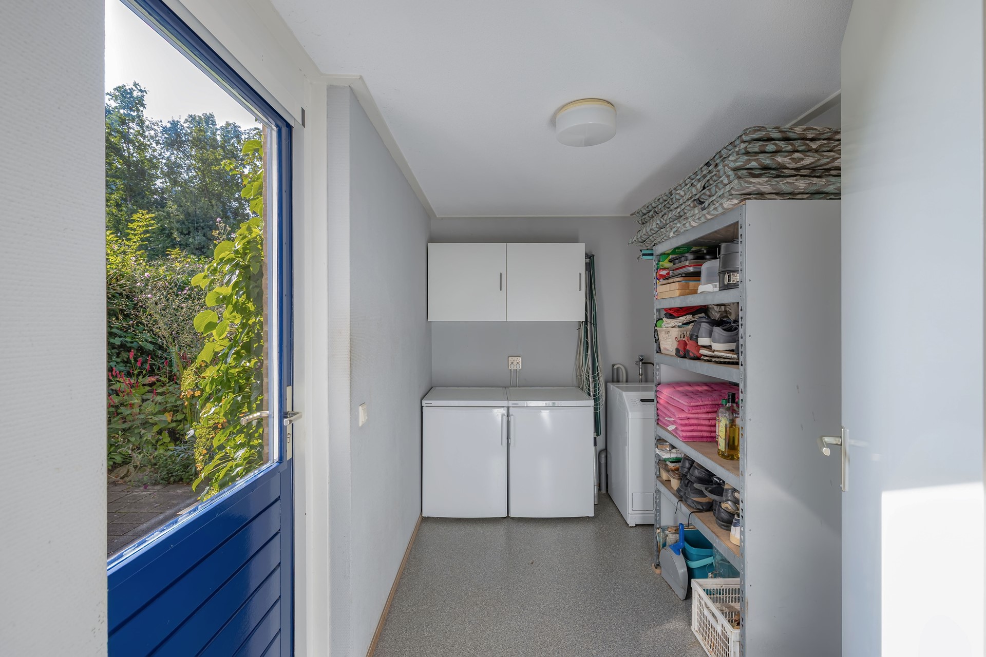 - Bijkeuken met wasmachine-opstelling en doorgang naar garage en terras