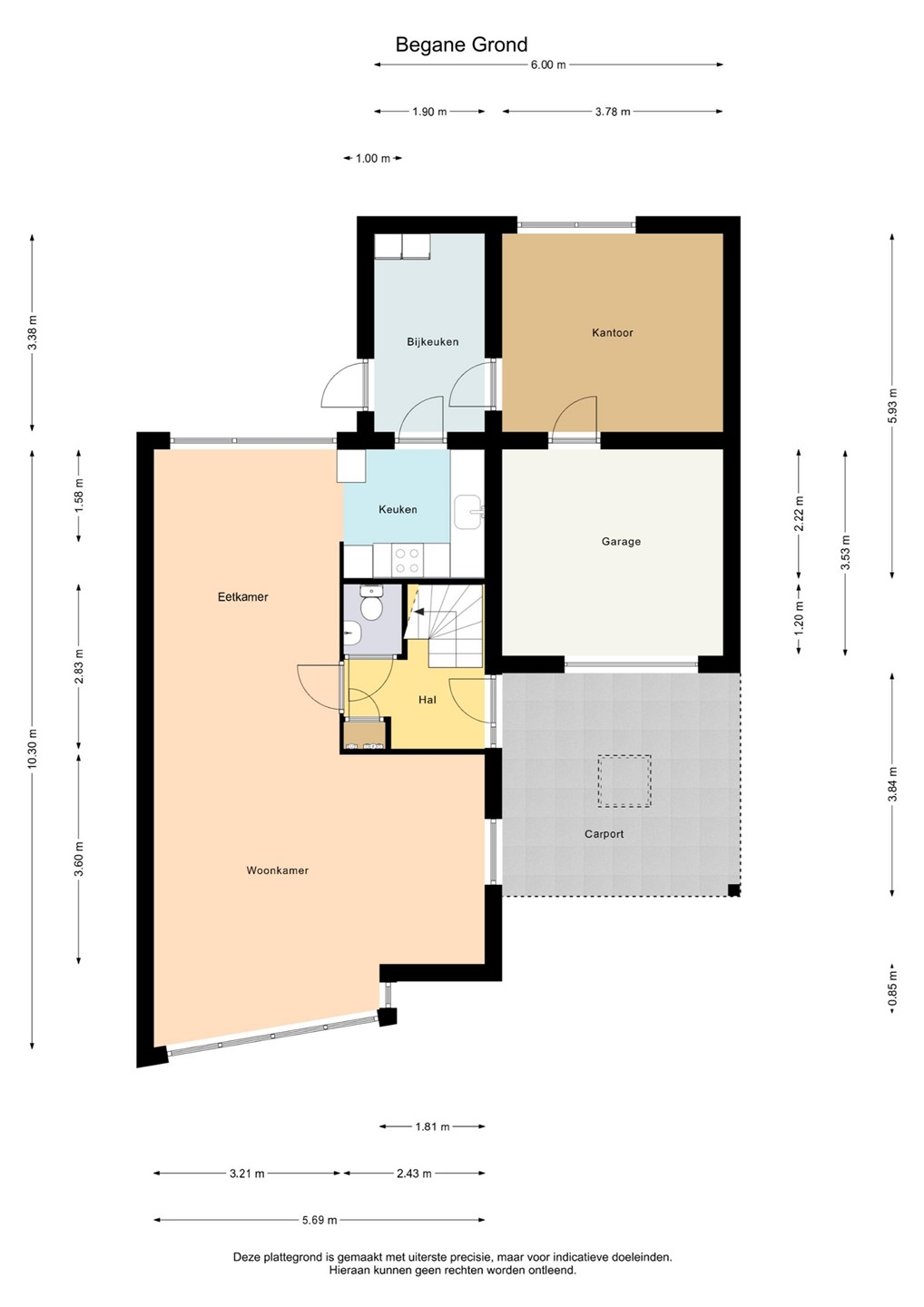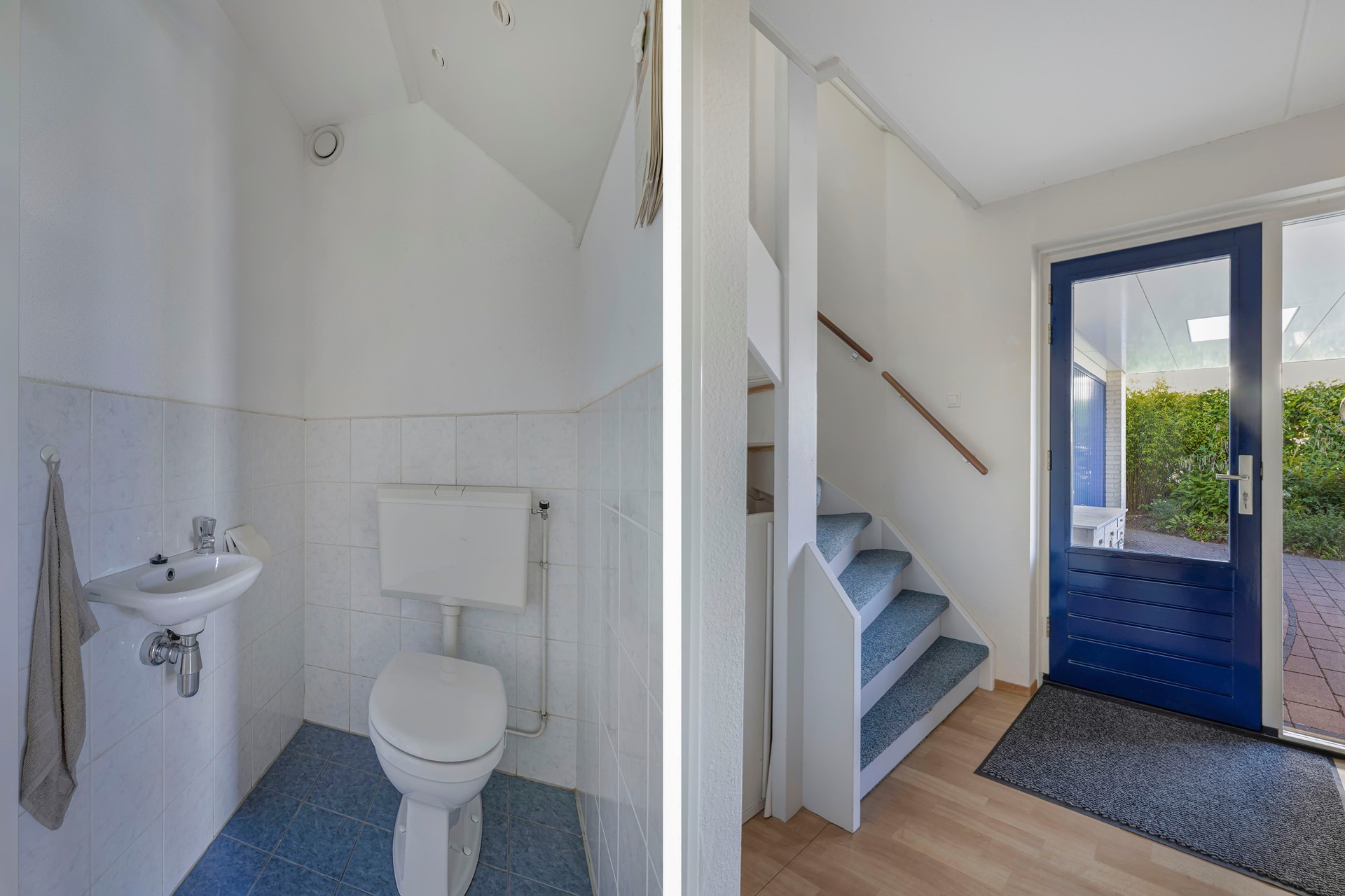 - Hal met overdekte entree, meterkast, toilet en trapopgang