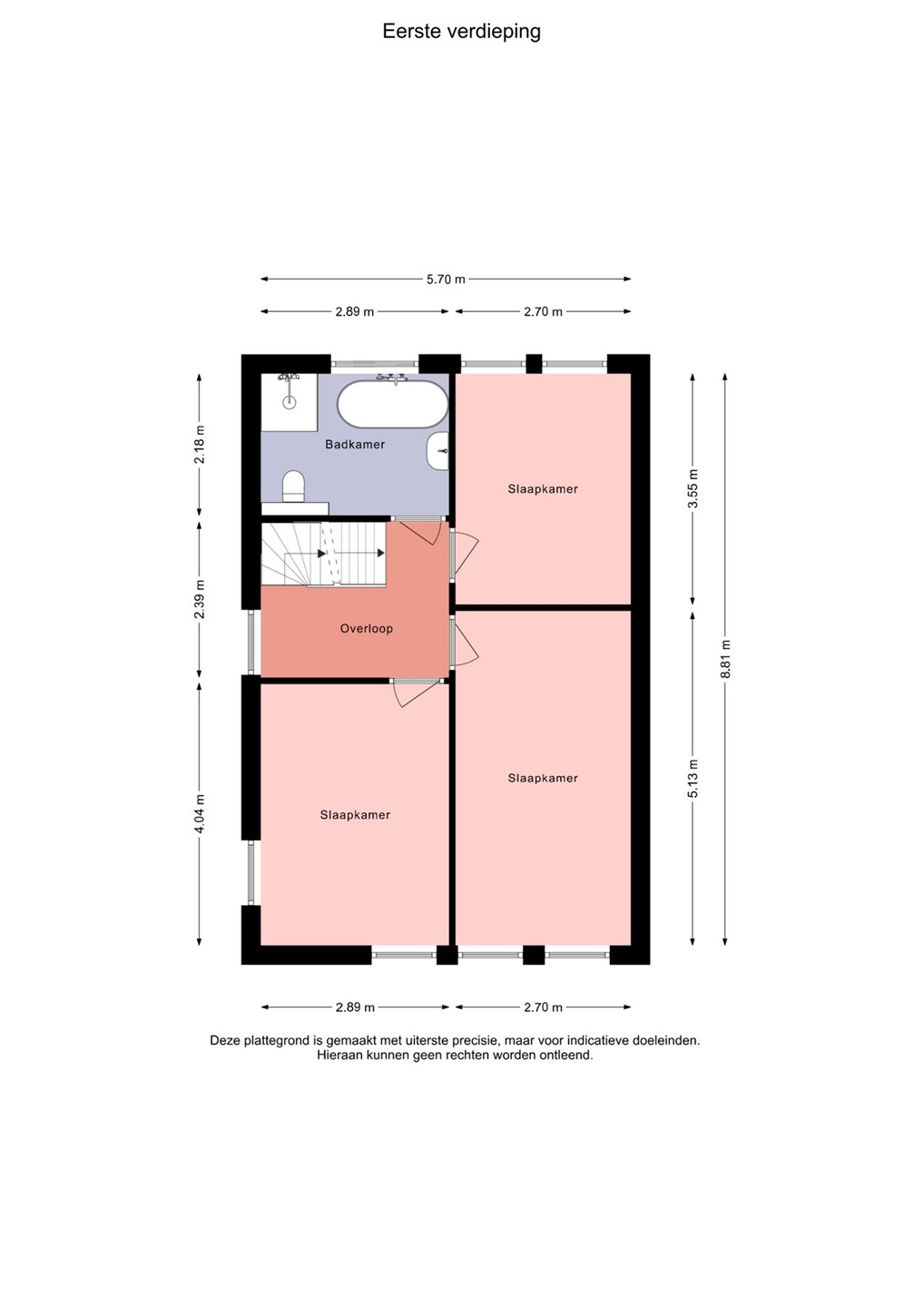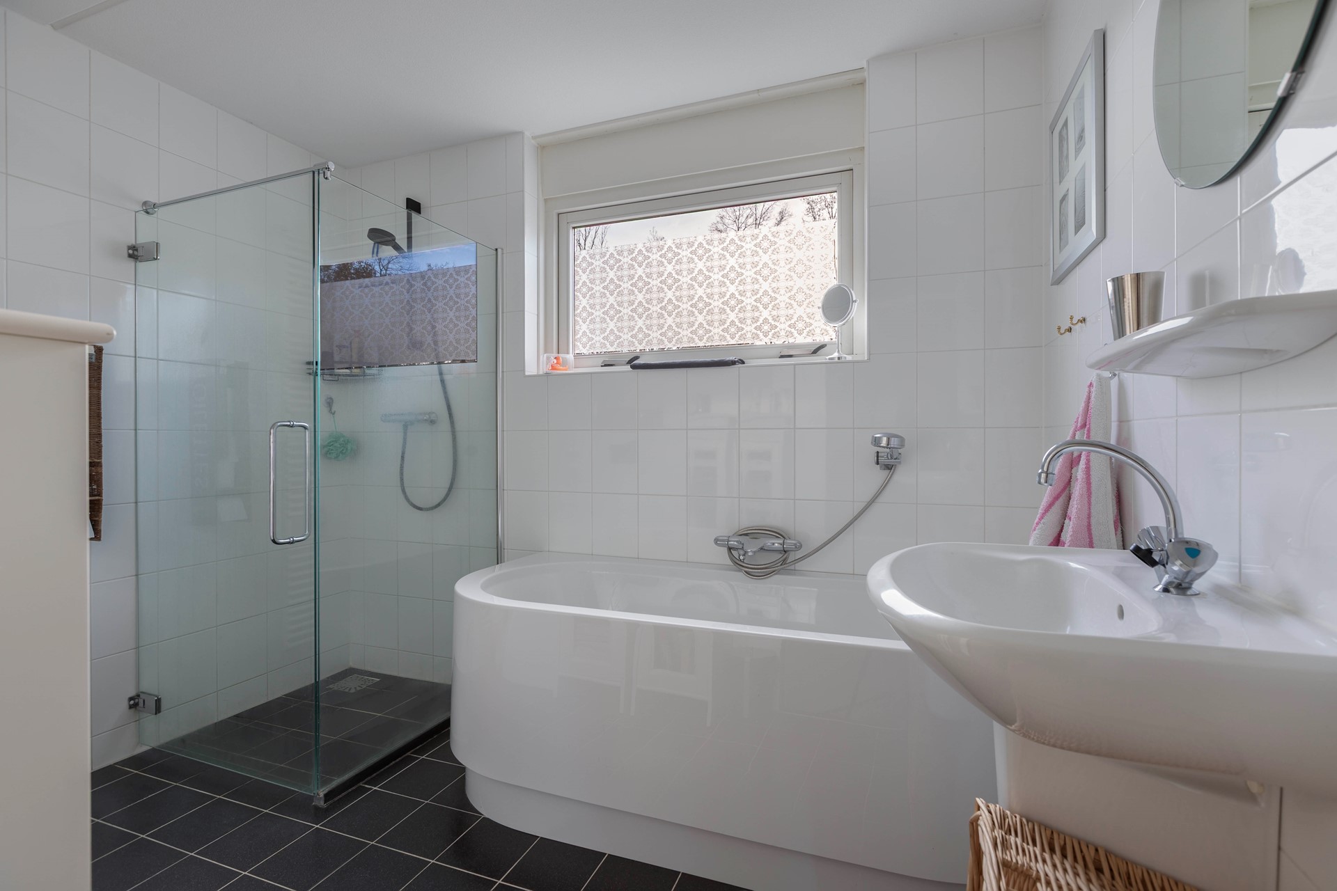 Op de eerste verdieping bevinden zich drie ruime slaapkamers. De badkamer is netjes onderhouden en uitgerust met een ligbad, douche, toilet, wastafel en designradiator.