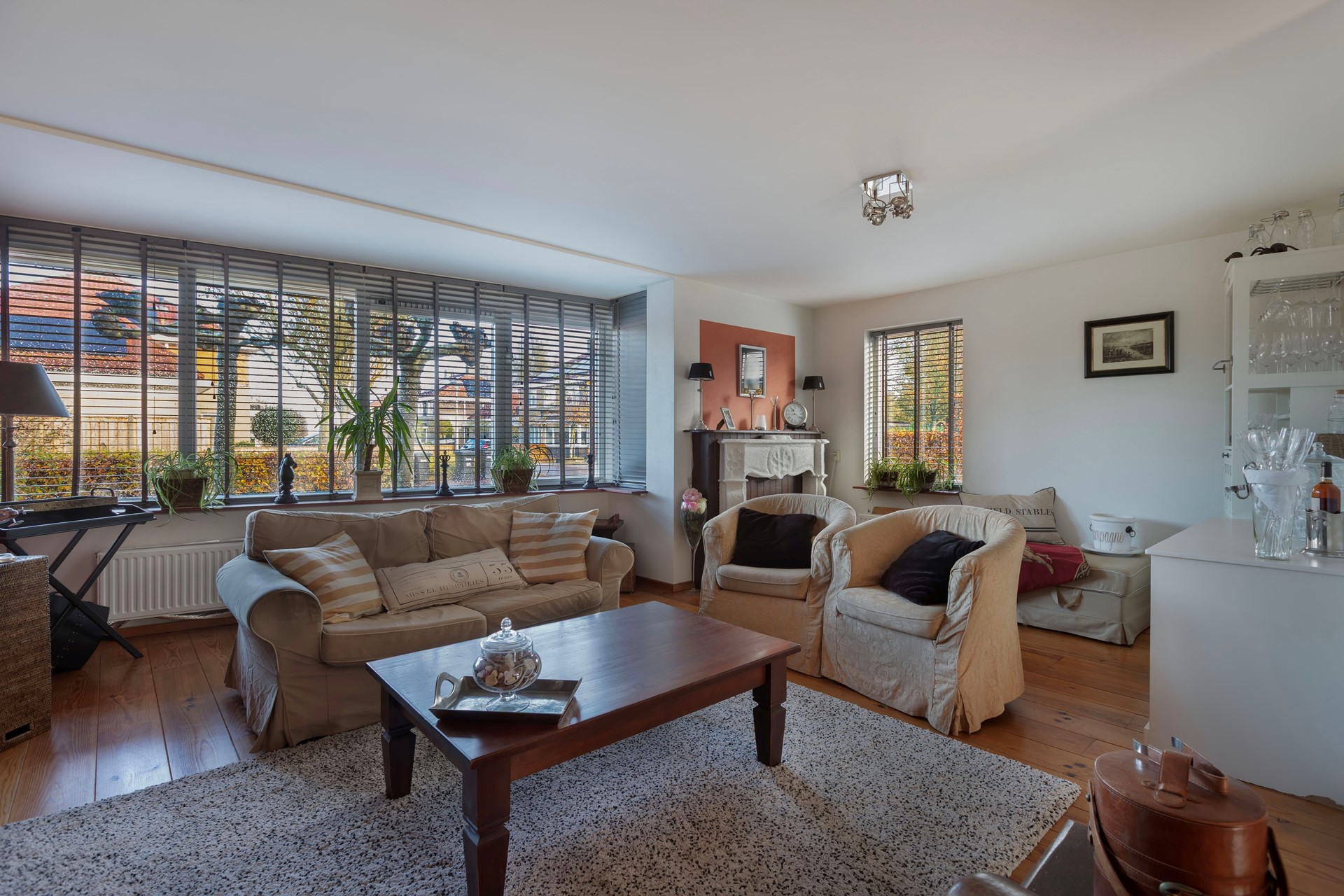 Je komt binnen in een ruime hal met vloerverwarming. De lichte woonkamer beschikt over een houten vloer en een comfortabele zithoek aan de voorzijde. Aan de tuinzijde is ruimte voor een grote eettafel, waar de openslaande deuren voor prachtig lichtinval zorgen en direct contact met de achtertuin geven.