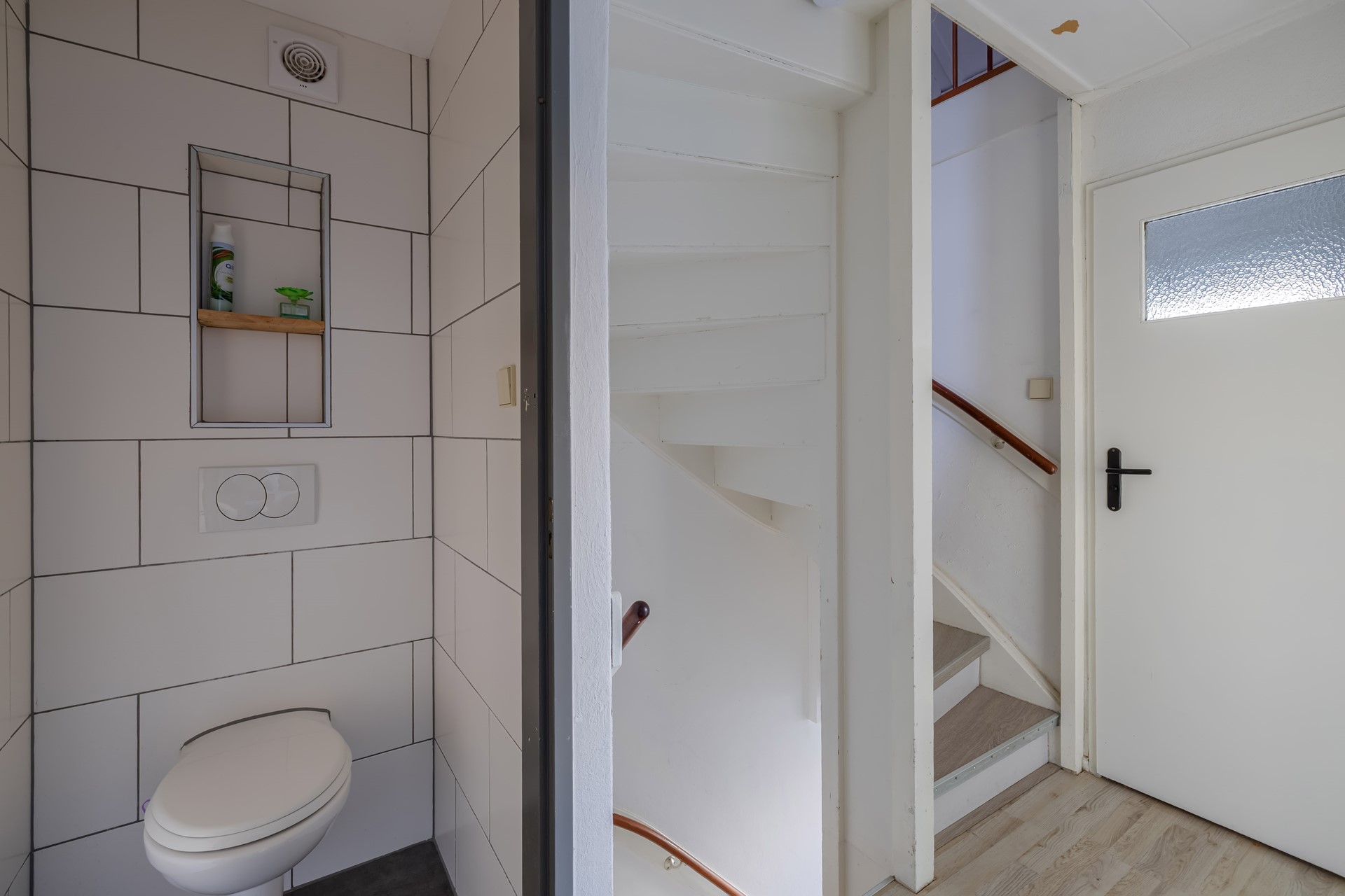 - Hal met toilet, meterkast, trapkast en vaste trap naar boven