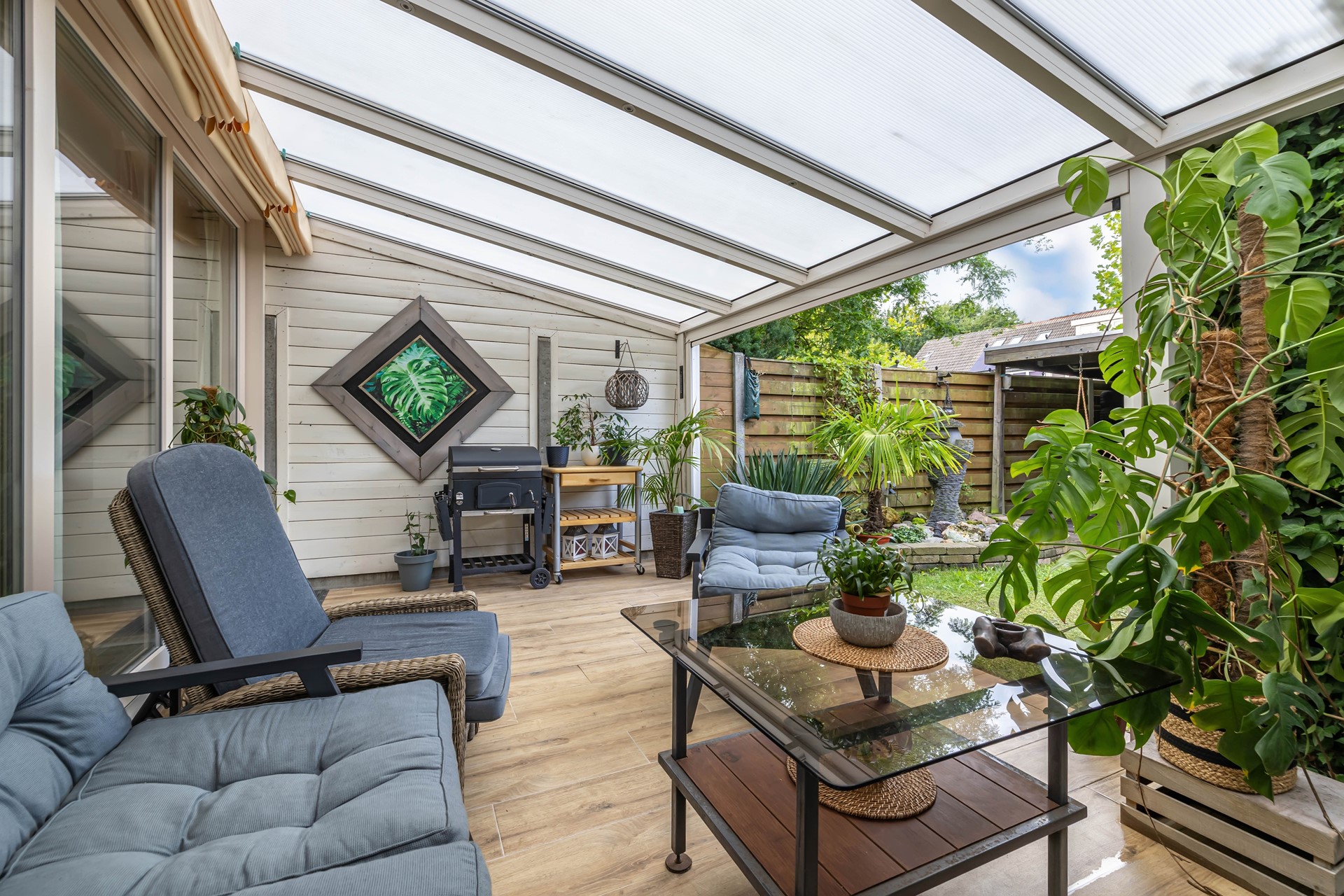 Via de schuifdeur bereik de je nette achtertuin op het westen. Hier is een luxe overkapping aanwezig waar je het grootste deel van het jaar heerlijk kunt zitten, ook is er een houten berging aanwezig. Aan de voorzijde is een kleine tuin op het oosten. Hier kun je in de ochtendzon genieten van een kopje koffie. De buurt is erg kindvriendelijk. Er zijn veel speeltuinen in de buurt.