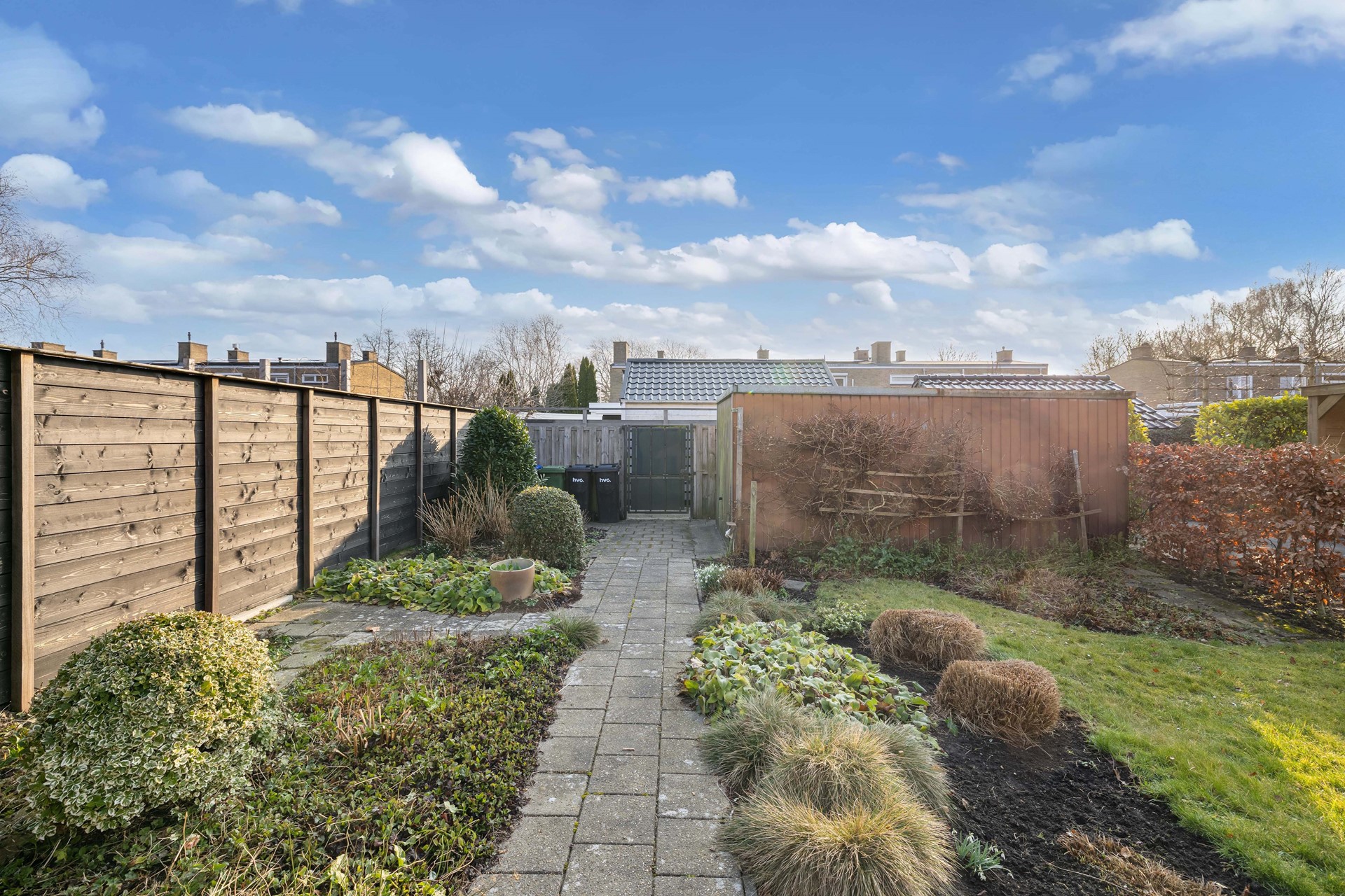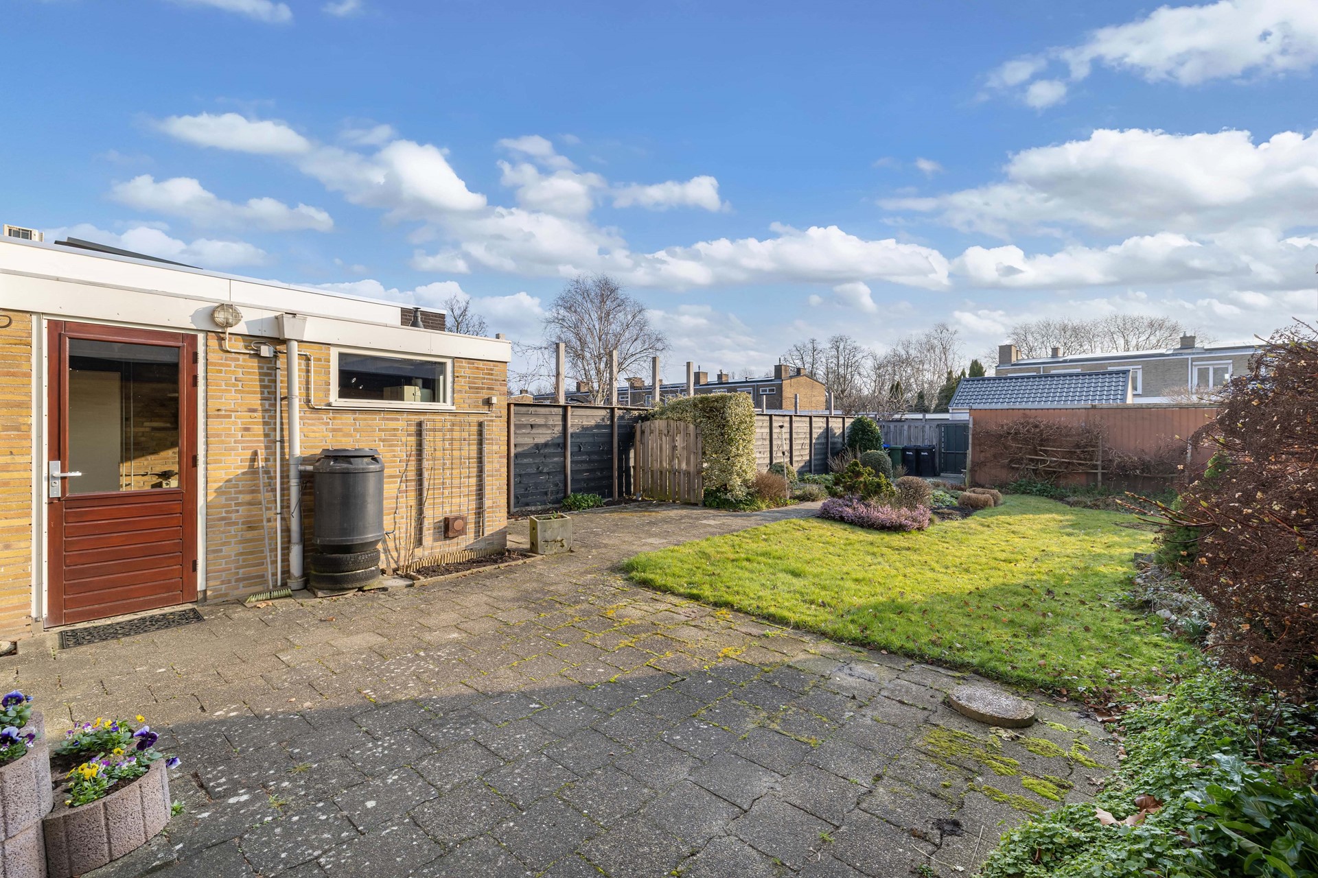 Deze woning beschikt over zowel een voor- als achtertuin, waardoor je op verschillende momenten van de dag van de zon kunt genieten. De voortuin ligt op het westen en is een fijne plek om in de middag of avond buiten te zitten.