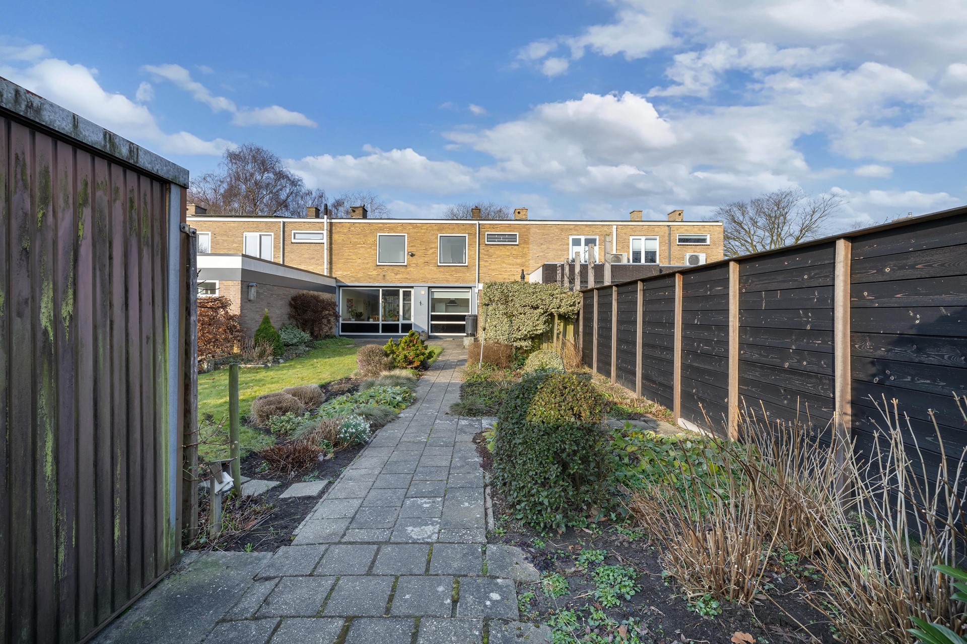 De achtertuin ligt op het oosten en is opvallend diep. Hierdoor is er volop ruimte voor meerdere terrassen, speelruimte voor kinderen of een groene tuin. Dankzij de grootte van het perceel zijn er diverse mogelijkheden om de tuin naar eigen wens in te richten.