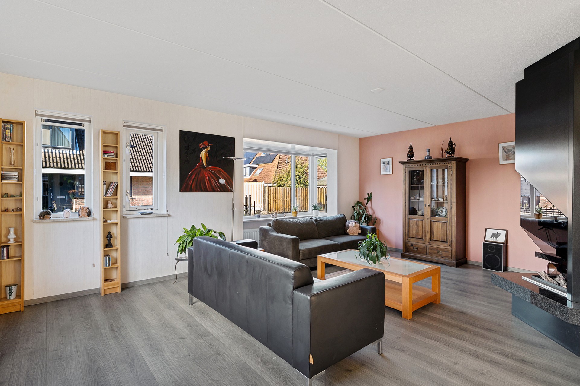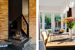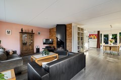De enorme woonkamer aan de voorzijde is voorzien van een prachtige gashaard, wat voor een snel aangename temperatuur zorgt. Er zijn veel ramen voor fijne lichtinval.