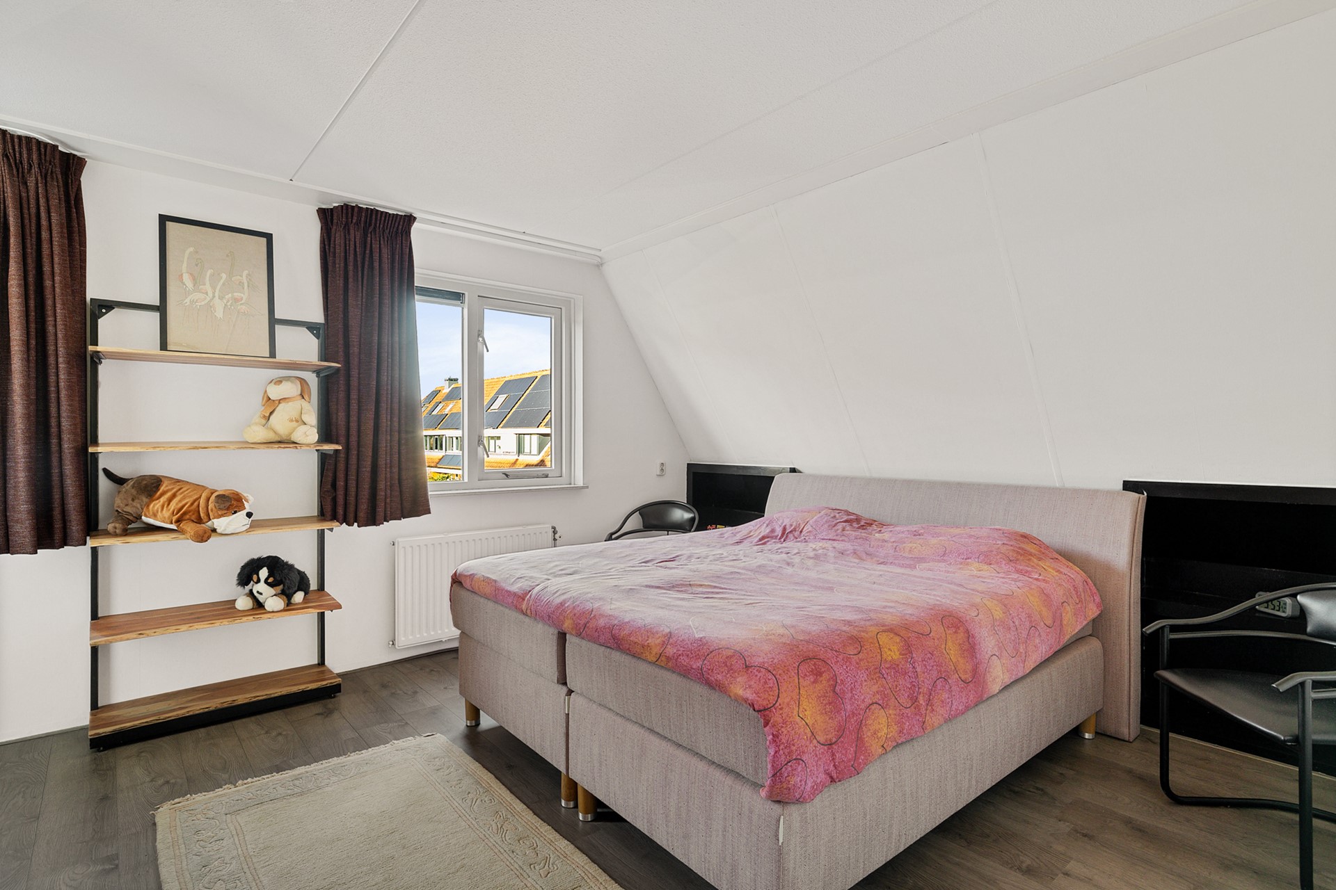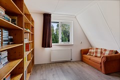 De tweede kamer op de verdieping is ook ruim te noemen en heeft zicht op de tuin.