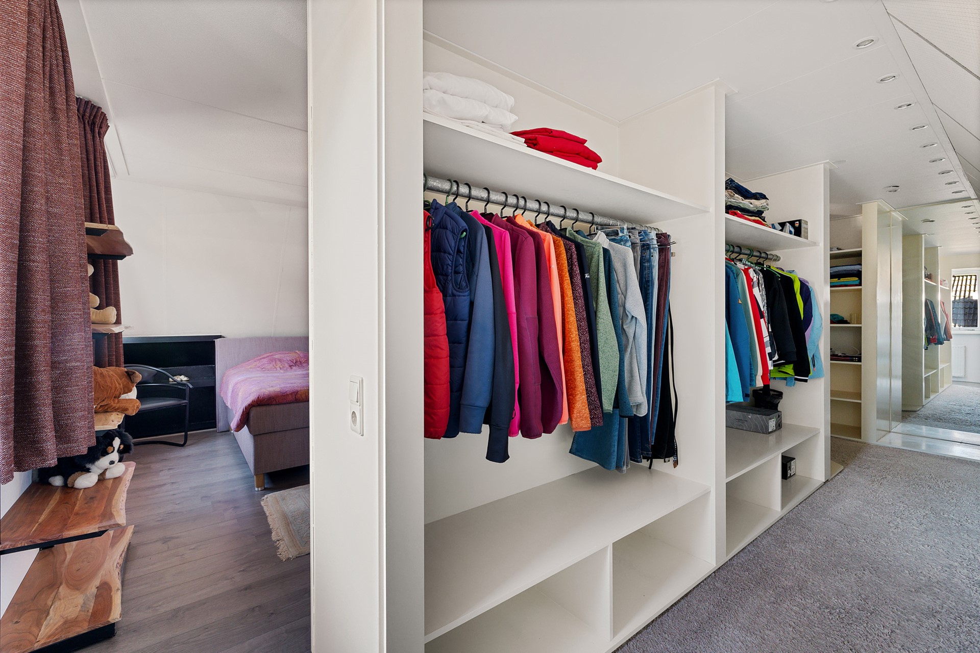 De master bedroom is nu zeer royaal en met de walk-in closet van maar liefst zes meter diep met hang- en legplanken voor je kleding en een spiegel om te shinen, goed ingericht.