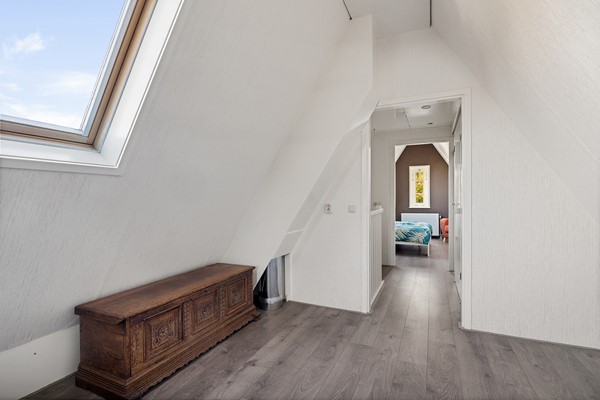 Met een vaste trap bereik je de eerste verdieping met de overloop, de cv-kast, badkamer en twee ruime slaapkamers.