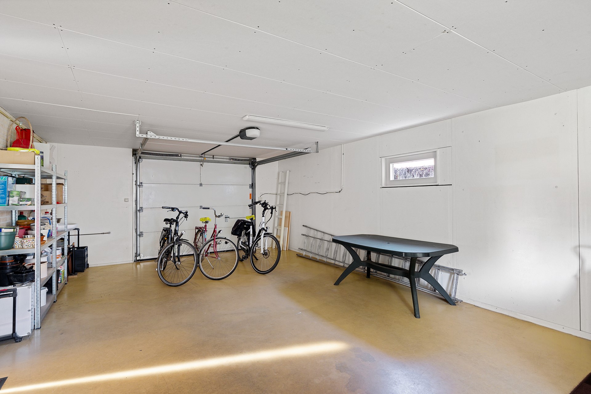 De garage met carport is vanuit de bijkeuken te bereiken. Naast de elektrische garagedeur naar de straatzijde is er ook een deur naar de achtertuin. De extra brede garage biedt voldoende ruimte voor je auto, je fietsen en om spullen op te bergen. De garage is voorzien van een gietvloer en is volledig geïsoleerd.