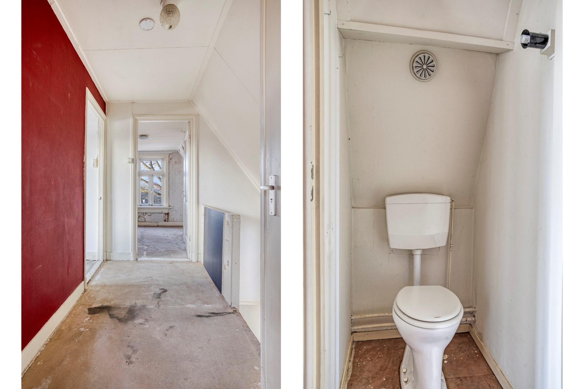 Op de eerste verdieping komt u op de overloop, die toegang biedt tot drie slaapkamers. Twee slaapkamers zijn voorzien van een wastafel en een inbouwkast, waarvan één beschikt over een dakkapel. De derde slaapkamer heeft eveneens een inbouwkast en biedt toegang tot een eenvoudige, gedateerde badkamer met douche en wastafel. Daarnaast is er op deze verdieping een separate, eveneens gedateerde toiletruimte met staand toilet.