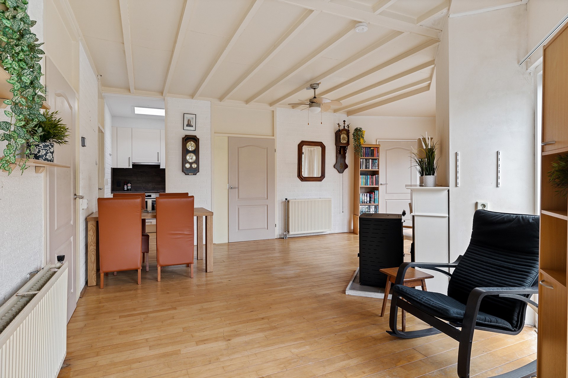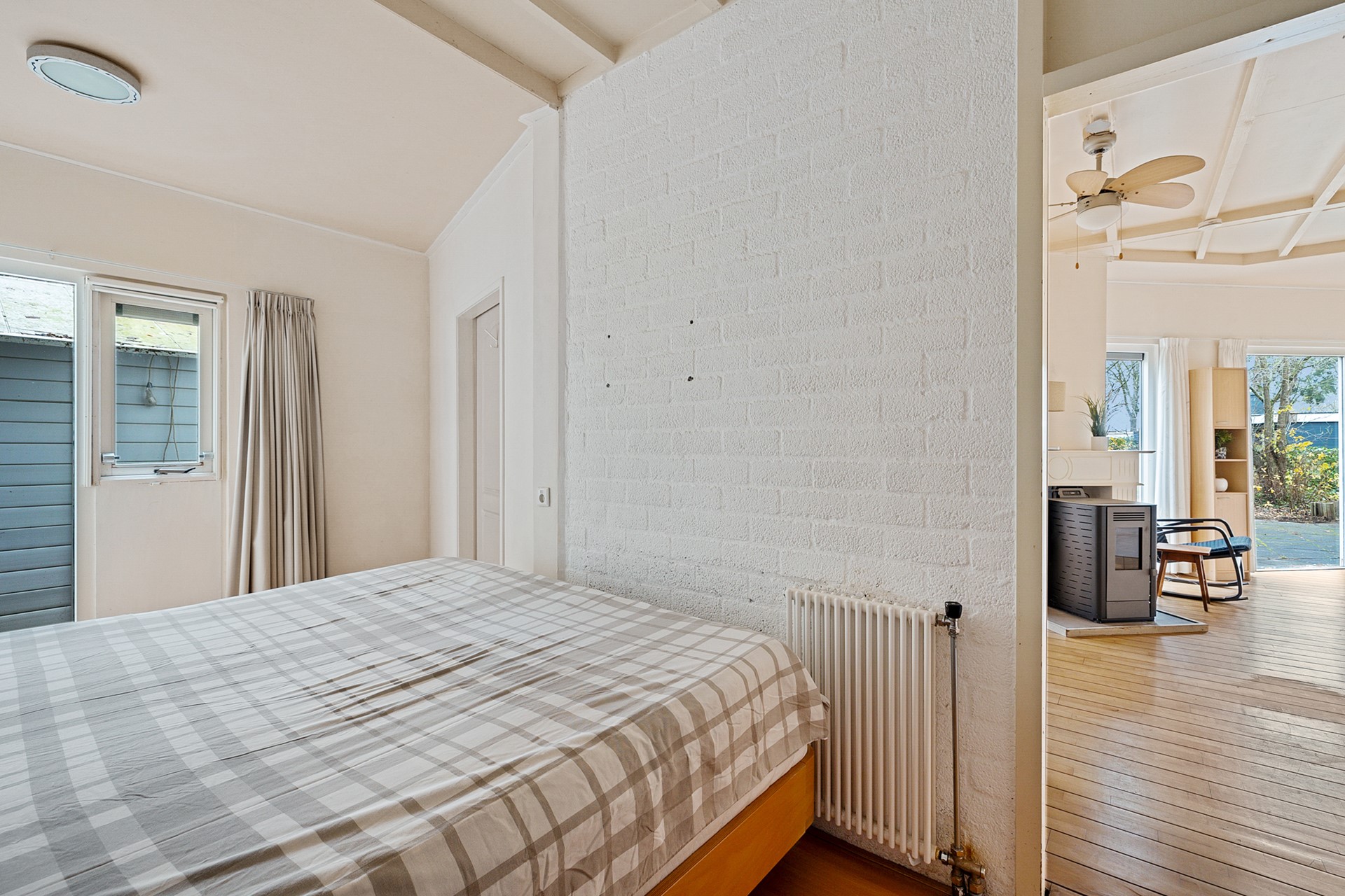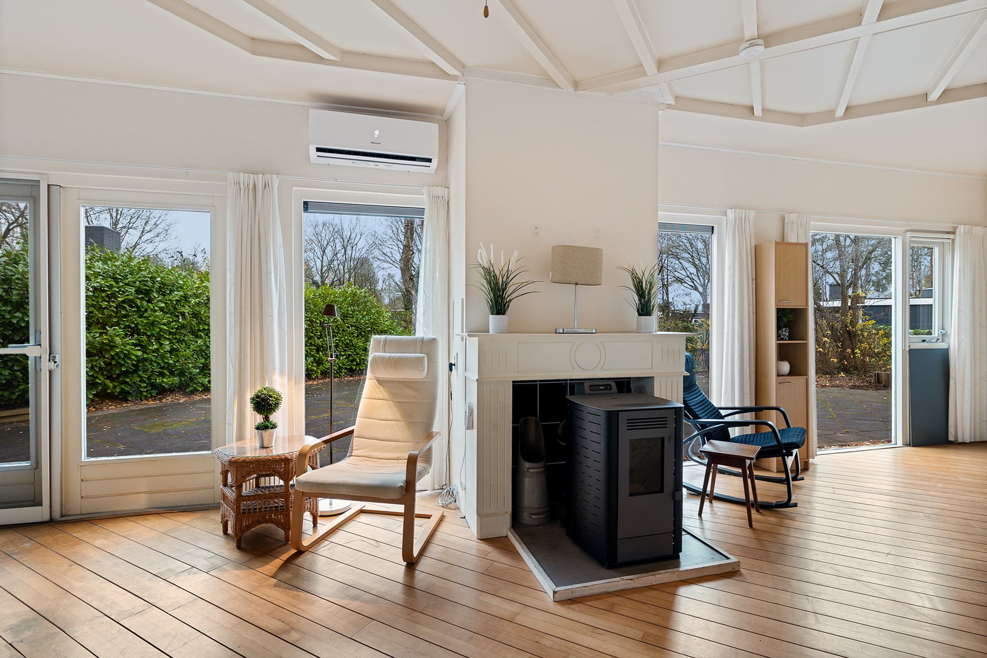 De woonkamer heeft rondom ramen tot aan de grond waardoor er veel lichtinval in de kamer is en vanuit hier heb je een mooi uitzicht op de tuin. Via de tuindeur tussen de woonkamer en slaapkamer stap je zo het terras op waar je heerlijk kunt genieten.