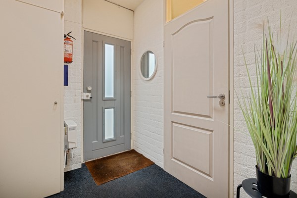 Je kunt de auto parkeren op een gezamenlijk parkeerterrein. Via de voordeur kom je in de hal met de meterkast en toegang tot de badkamers waarvan één met toilet en de woonkamer. De hal is voorzien van een lichtkoepel voor extra lichtinval.
