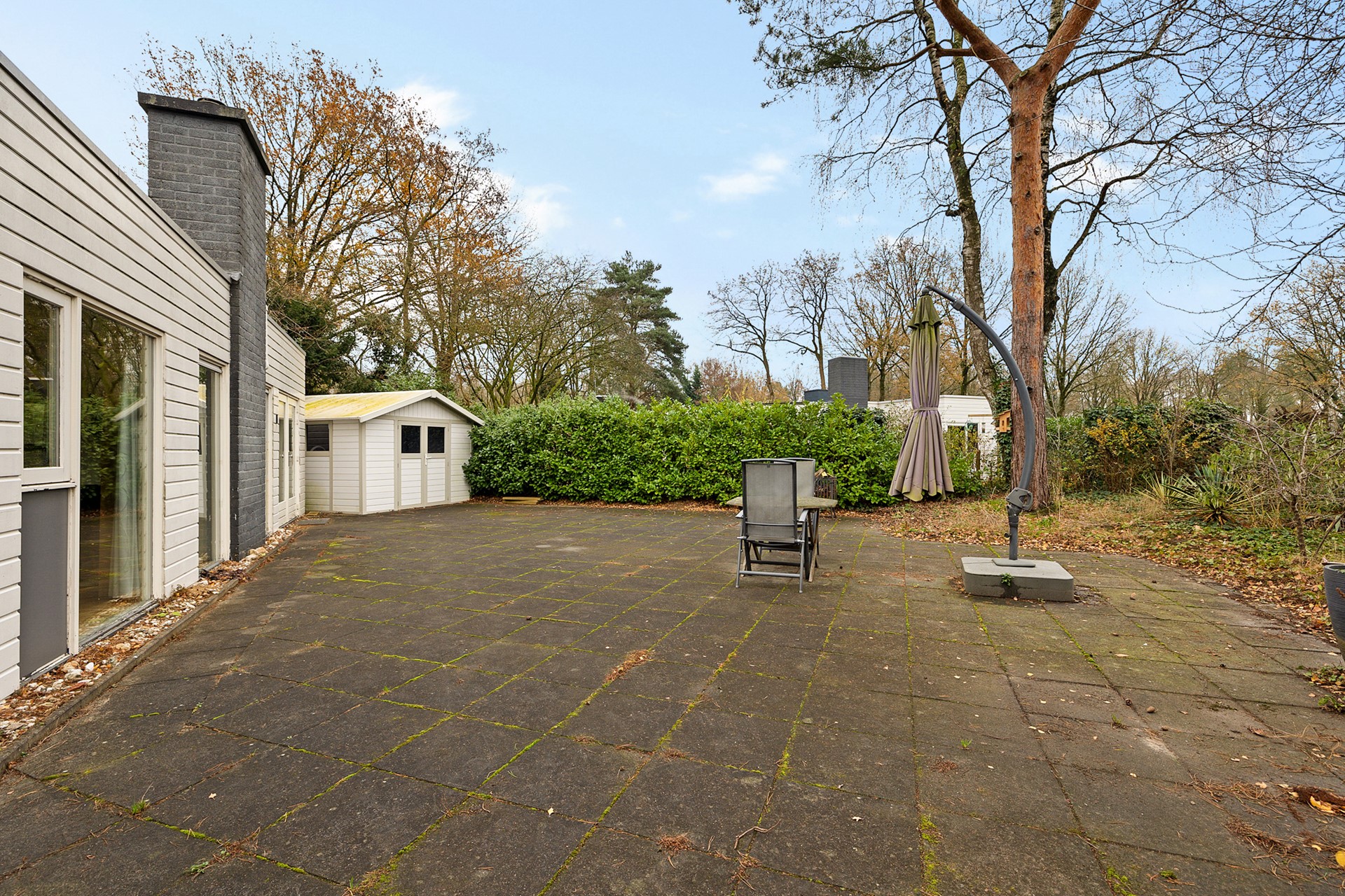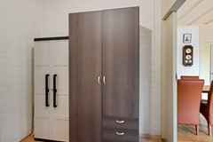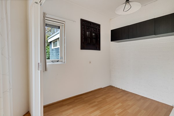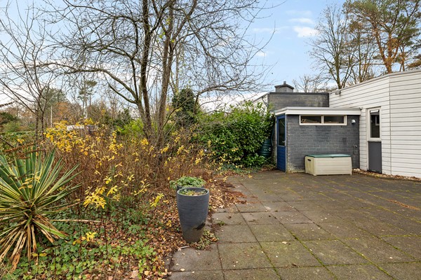 De tuin is netjes onderhouden en voorzien van bestrating. Naast de aangebouwde stenen berging voor de fietsen en het tuingereedschap is er ook nog een kunststof berging aanwezig. De tuin heeft een fraaie ligging aan het groenplantsoen. Je loopt vanuit de bungalow zo richting het water. Een ideale ligging dus op dit mooie park.