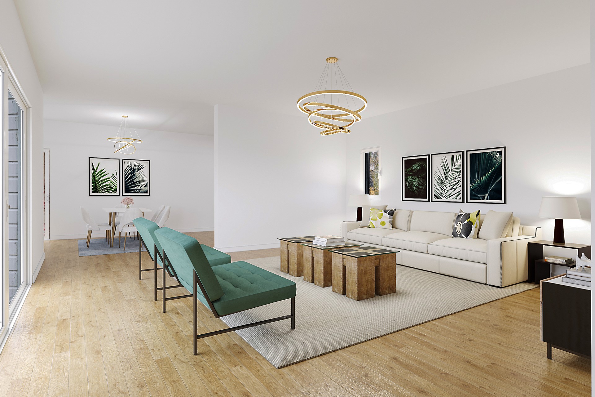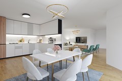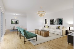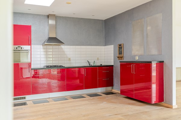 De linkervleugel huisnummer 171. In deze vleugel bevindt zich de lichte woonkamer met halfopen woonkeuken. Door de extra geplaatste lichtkoepels valt er veel daglicht binnen, wat de ruimte een open warme en lichte uitstraling geeft. Daarnaast zijn hier twee extra slaapkamers en een tweede badkamer met inloopdouche, toilet en wastafelmeubel. Via de oorspronkelijke hal is nog een derde (gasten) toilet bereikbaar.