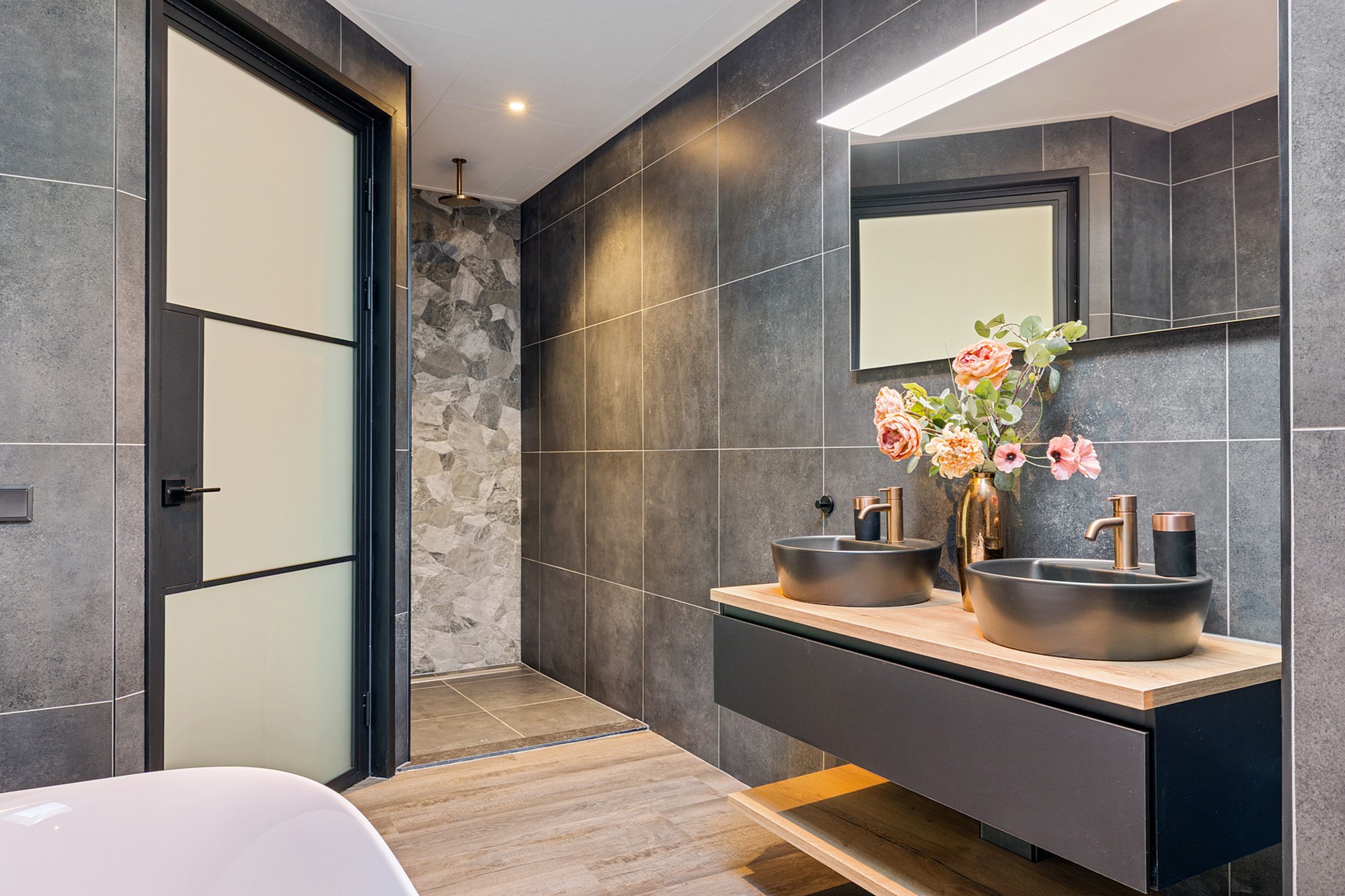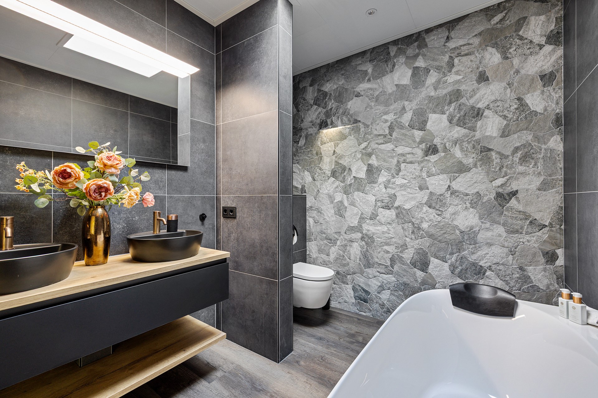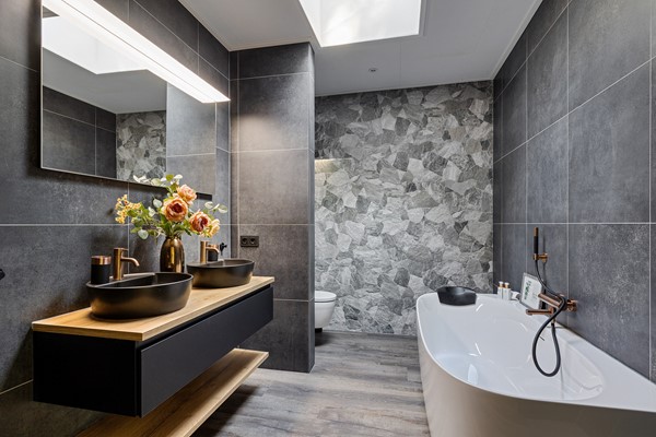 Badkamervoorzieningen Dubbele wastafel, Inloopdouche, Ligbad, Toilet