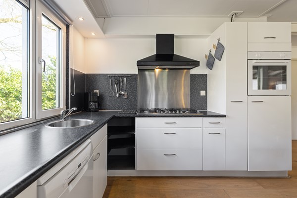 De berging is voorzien van grote kasten waar je gemakkelijk zaken uit het zicht kunt opbergen. Verder bereik je door middel van een vlizotrap de vliering met extra bergruimte.