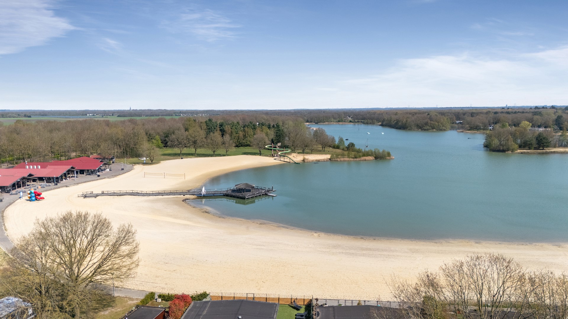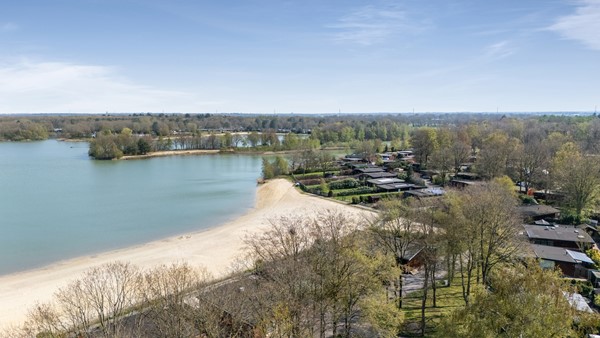 Rondom de chalet ligt een tuin met een prettige afwisseling van zon en schaduw, waardoor het ook in de zomer aangenaam blijft. Verder is er een houten berging aanwezig en liggen het strand en de recreatieplas op korte loopafstand.