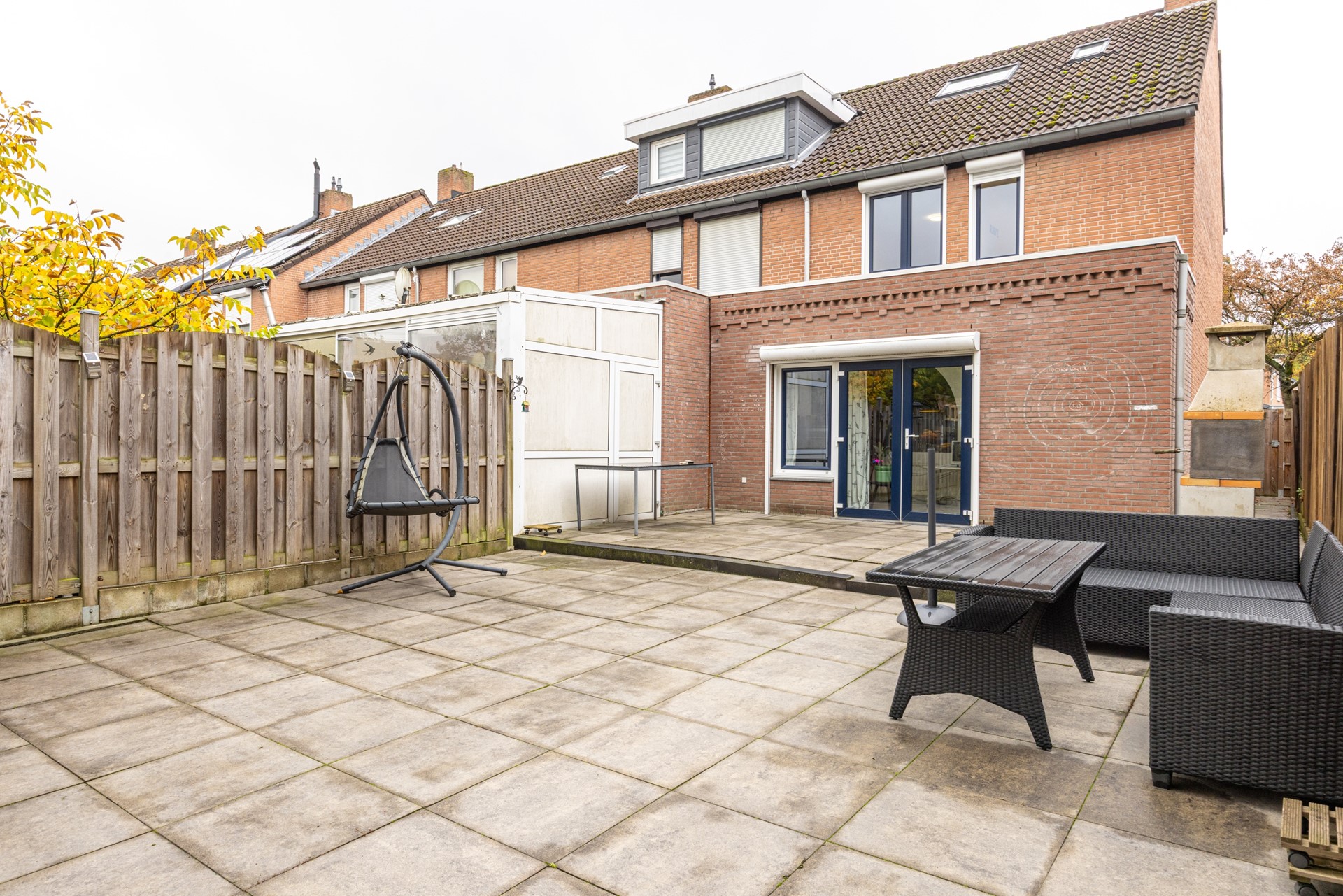De achtertuin is verzorgd aangelegd en volledig bestraat. Er is voldoende ruimte om met plantenbakken of potten eenvoudig extra groen toe te voegen. Dankzij de praktische indeling is er plek voor een gezellige zit- of eethoek, waar u op mooie dagen heerlijk buiten kunt ontspannen. De tuin is bereikbaar via de aanbouw én beschikt over een zij-ingang en een achterom.