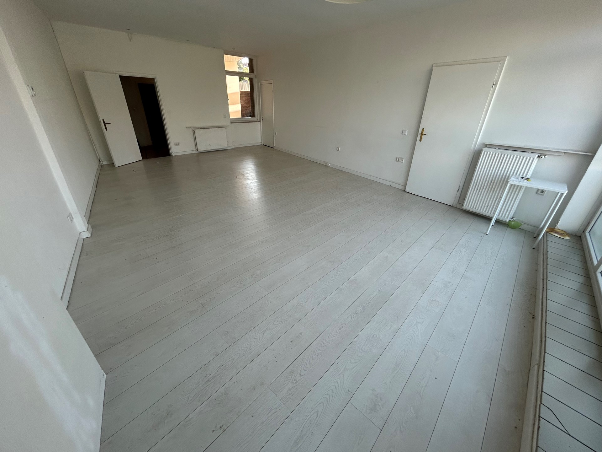 Grote woonkamer 8,25 x 4,90 met nieuwe meterkast met slimme meters en deur naar keuken.