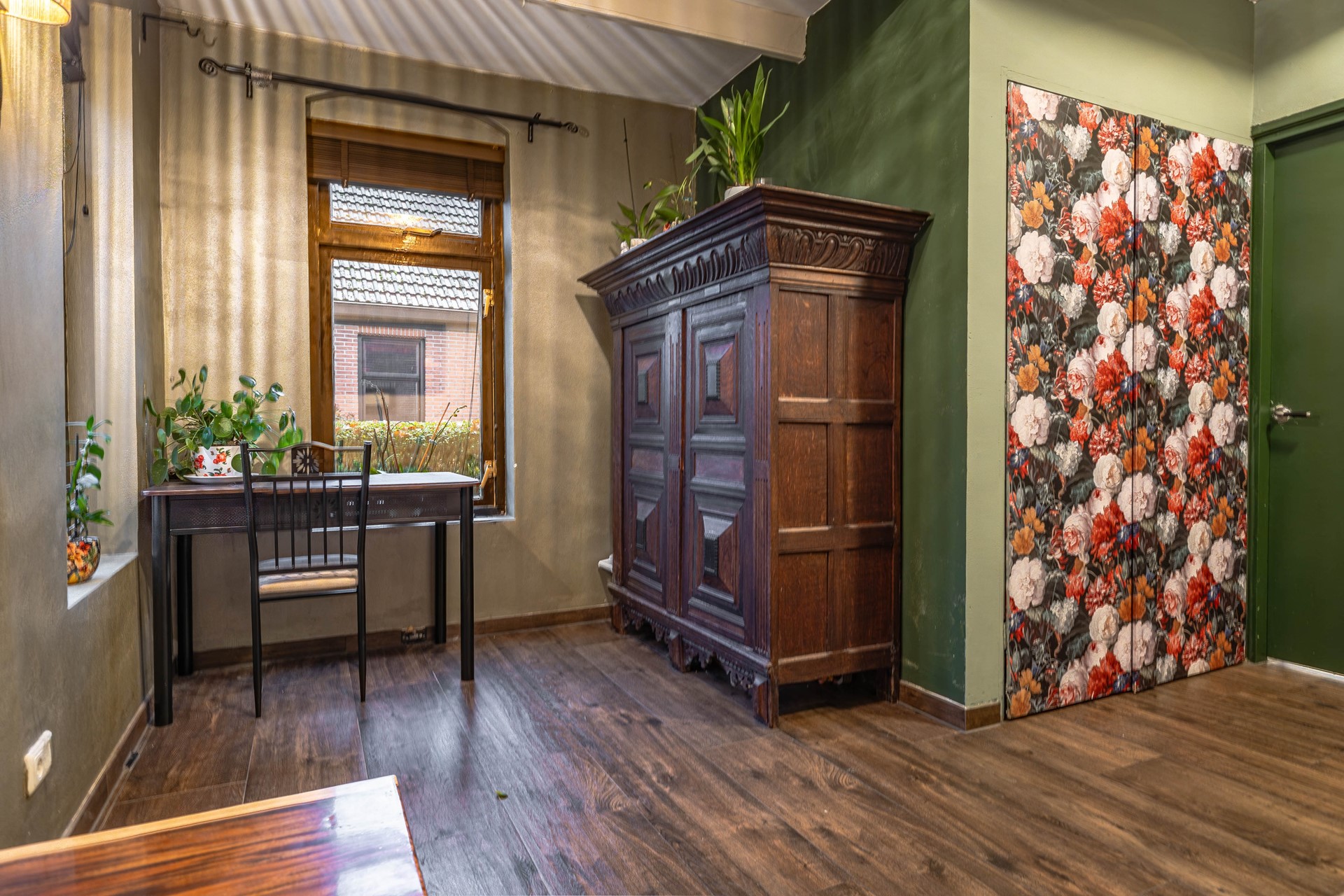 Verder is er nog een extra kamer aanwezig die uitstekend dienst kan doen als slaapkamer, kantoor of speelruimte, plus een handige inbouwkast. Vanuit de hal leidt de trap naar de eerste verdieping. De gehele benedenverdieping is voorzien van comfortabele vloerverwarming.