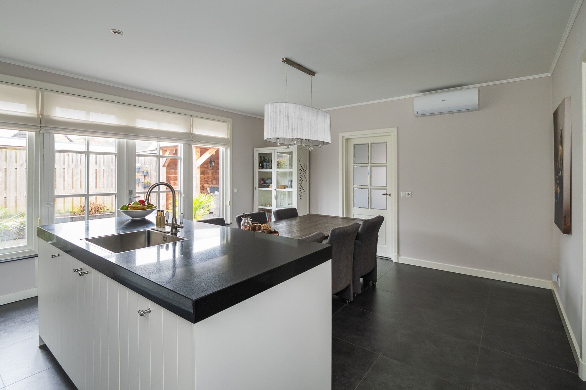 De airconditioner in de woonkeuken voorziet de gehele begane grond van een aangenaam klimaat.