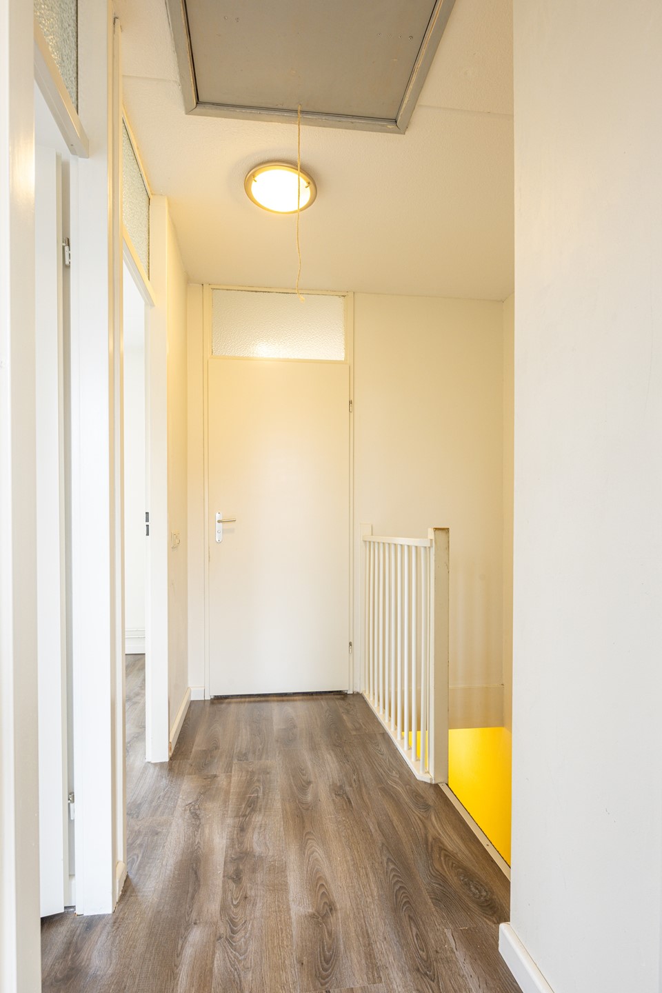 De overloop geeft toegang tot drie slaapkamers en de badkamer. Alle slaapkamers zijn voorzien van een laminaatvloer en hebben een prettige lichtinval. De kamers hebben goede afmetingen en zijn flexibel in gebruik. De kleinste kamer is geschikt als werkkamer, maar kan ook als slaapkamer worden ingericht.